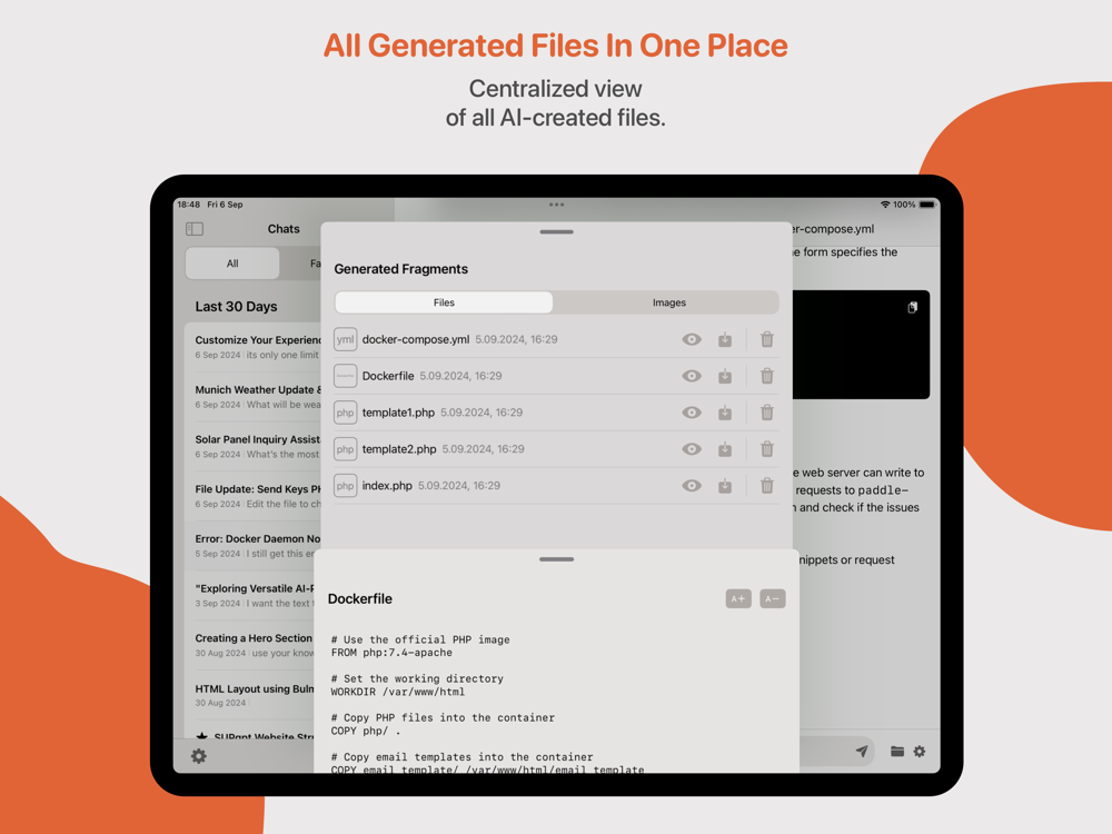 - Fragments: Access all generated files and images in one convenient hub for each chat
