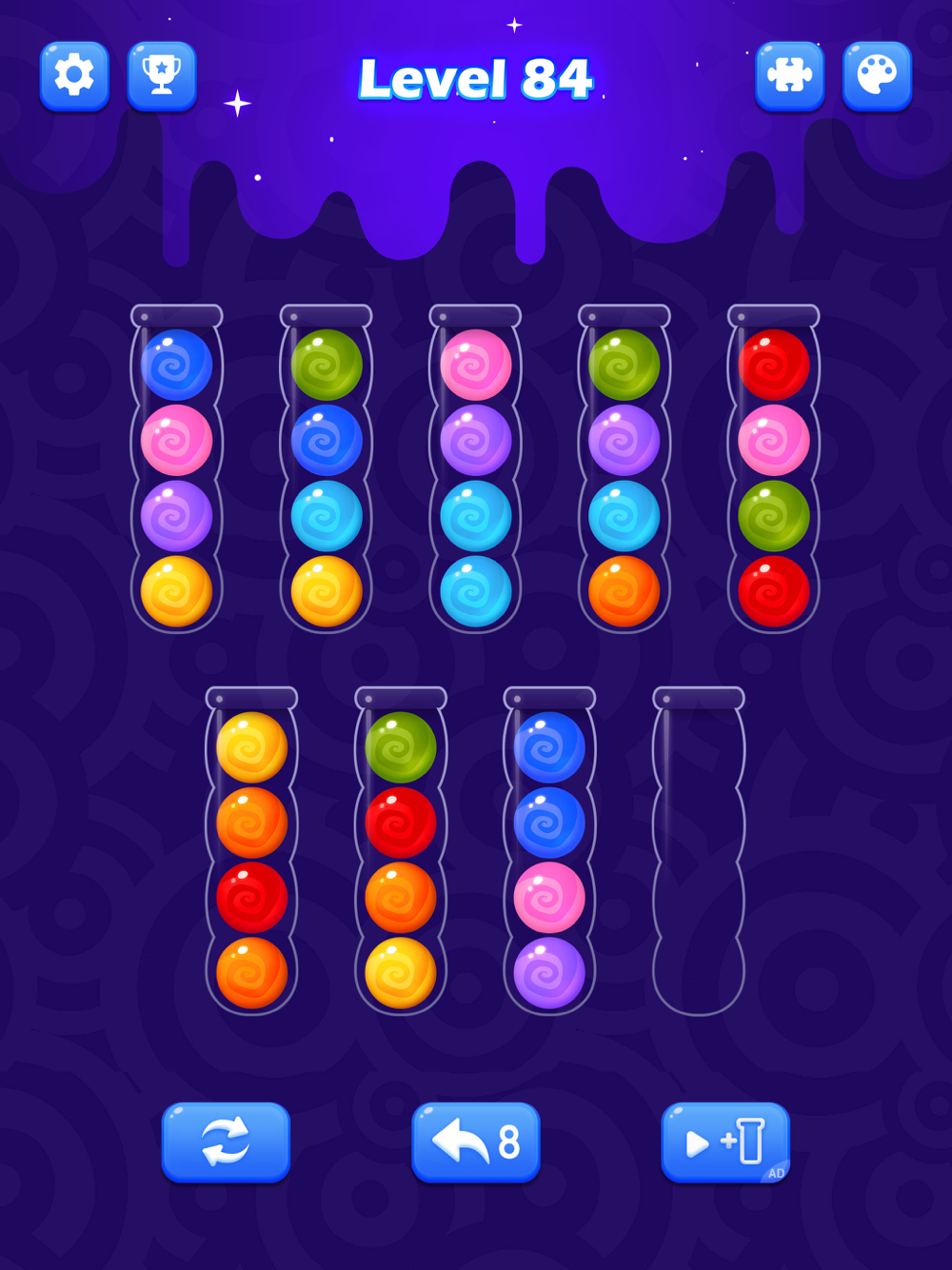 - Many interesting color ball sort background, balls (such as marbles, emoji balls, yarn ball, etc.), and ball sorter tubes to choose from.