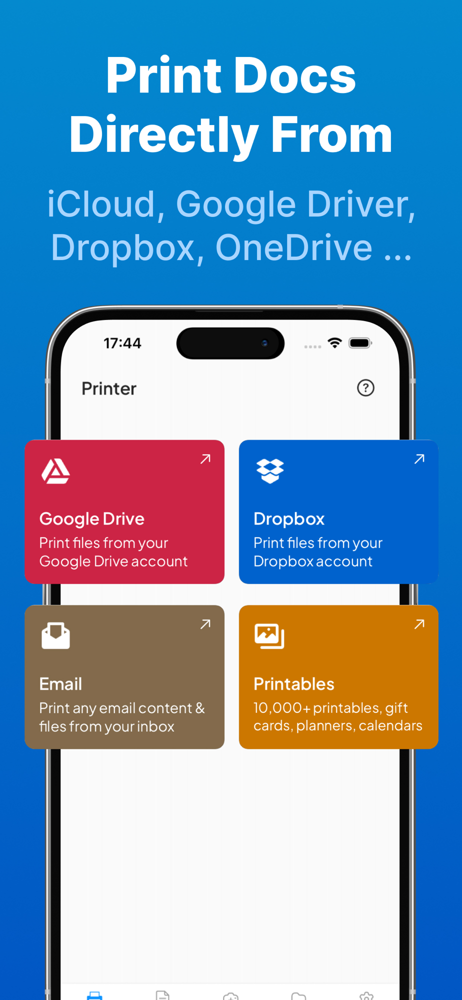 - Print documents or photos from iCloud, Dropbox, or Google Drive without hassle.