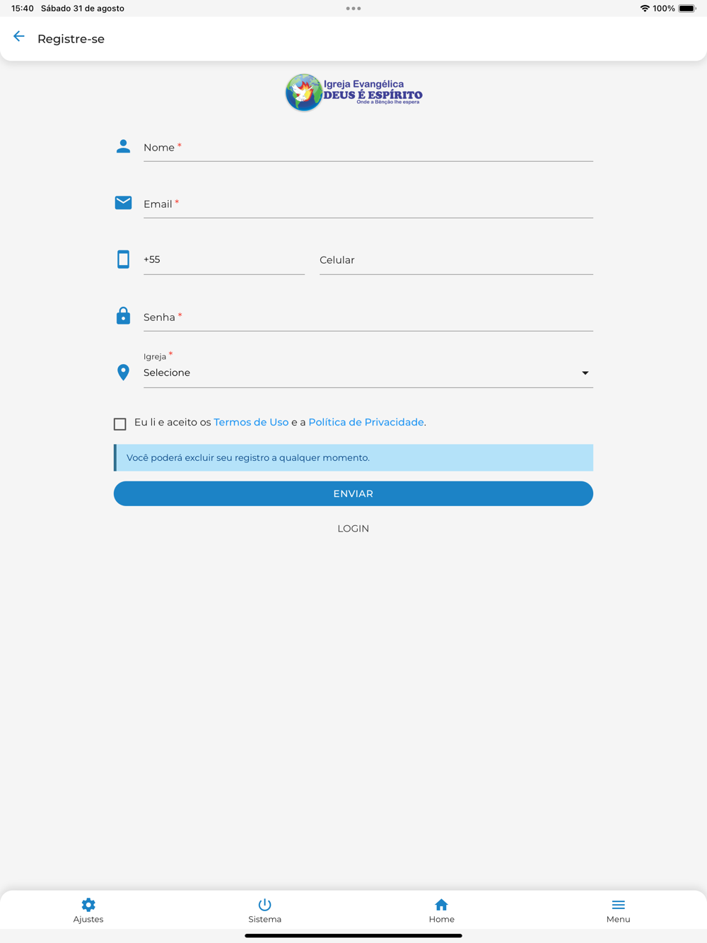 Seja bem-vindo ao app da Igreja Evangélica Deus é Espírito!