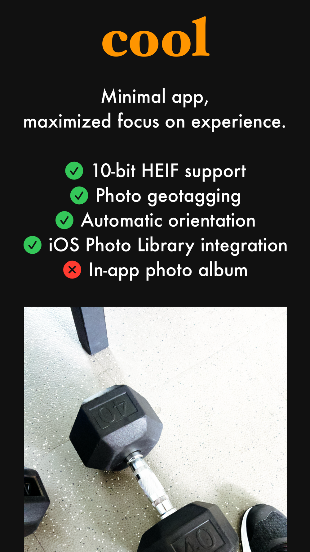 Point and shoot, and that's it: your photo is saved to your iOS Photo Library, and the camera gets out of your way.