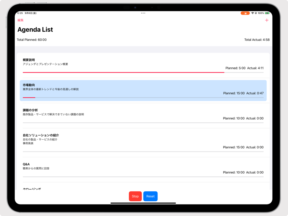 Struggling to keep track of your agenda during meetings or presentations? This app is here to support smooth progress management.