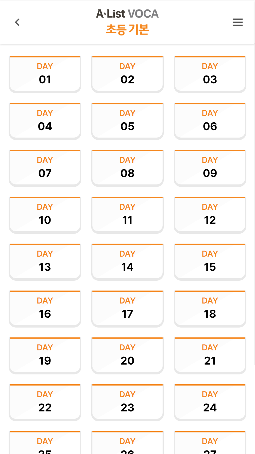* 교재에 수록된 DAY별 단어, 단어 뜻, 예문을 개별로 듣거나 이어듣기