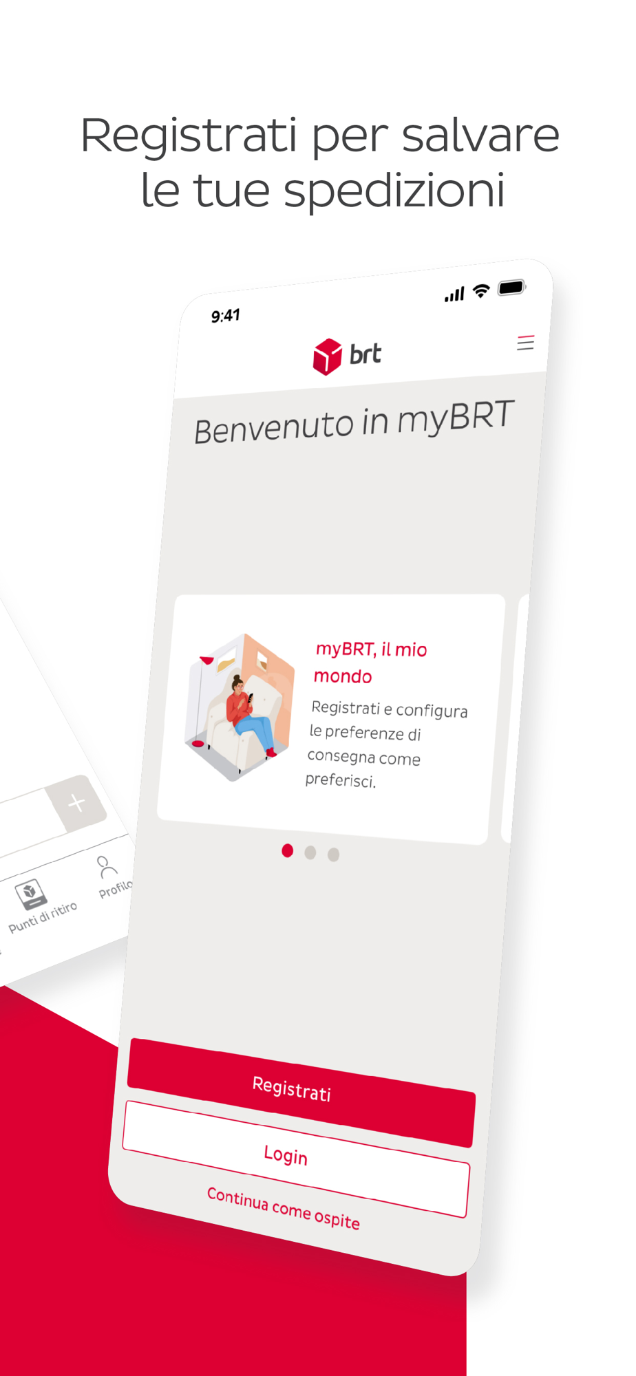 - Reindirizza le spedizioni: decidi quando e dove vuoi che il tuo pacco venga consegnato. Se non sei a casa, possiamo consegnare a un BRT-fermopoint, a un locker oppure consegnare a un altro indirizzo o in un giorno diverso.