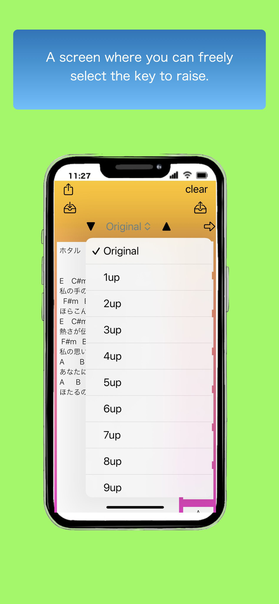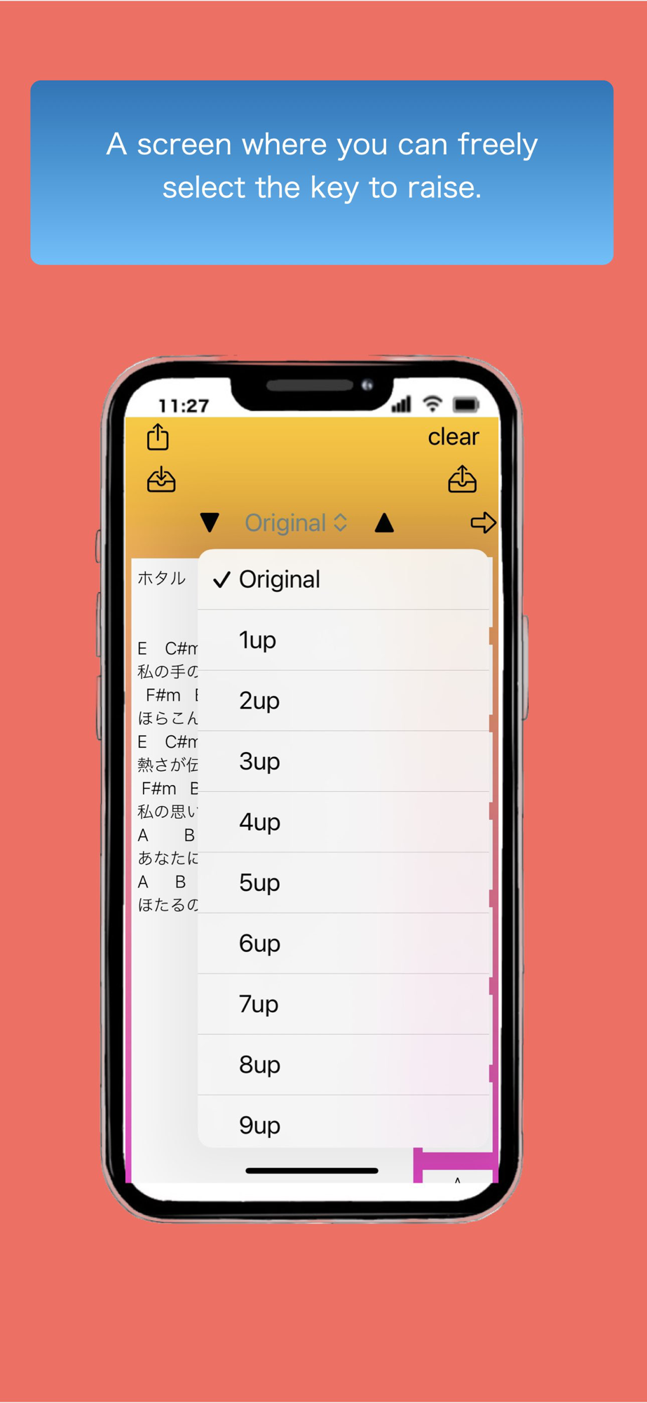 This app was created to make it easy for guitar beginners to convert chord progressions. When the original key is too high to sing or the chords are too difficult to play, adjusting the key up or down can make it easier to sing or play along.