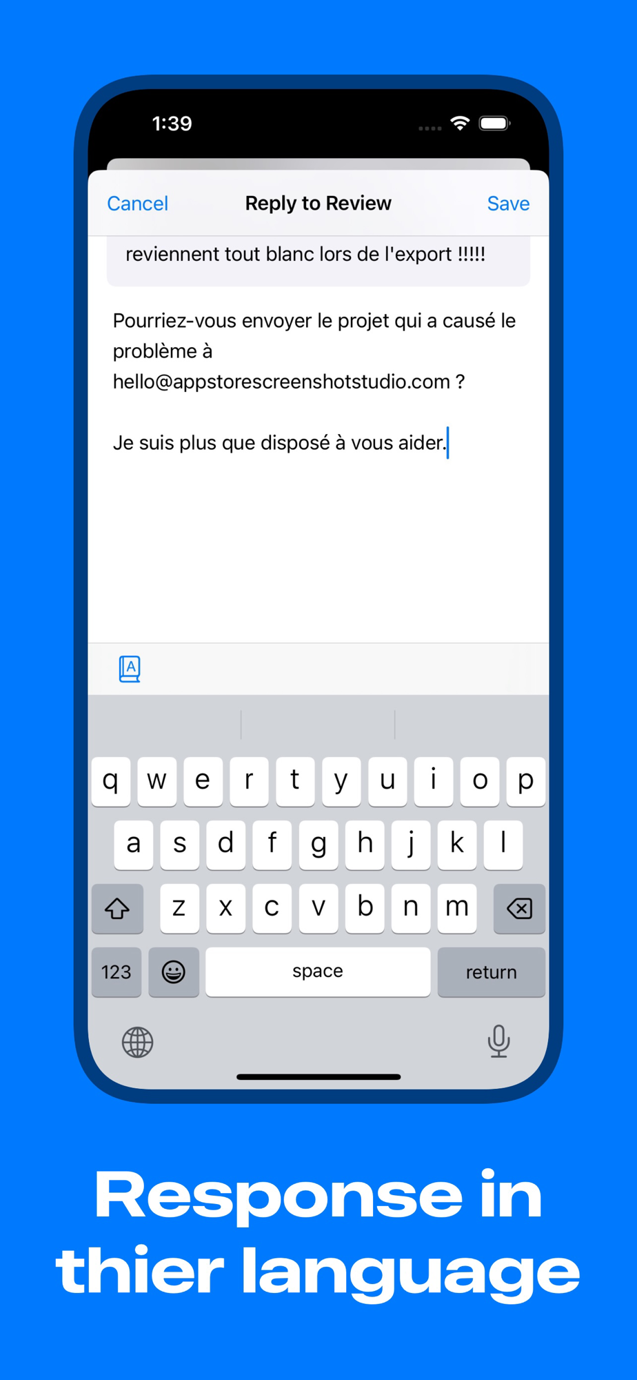 - Response in customer language: Translate your response into a language your customer speaks.
