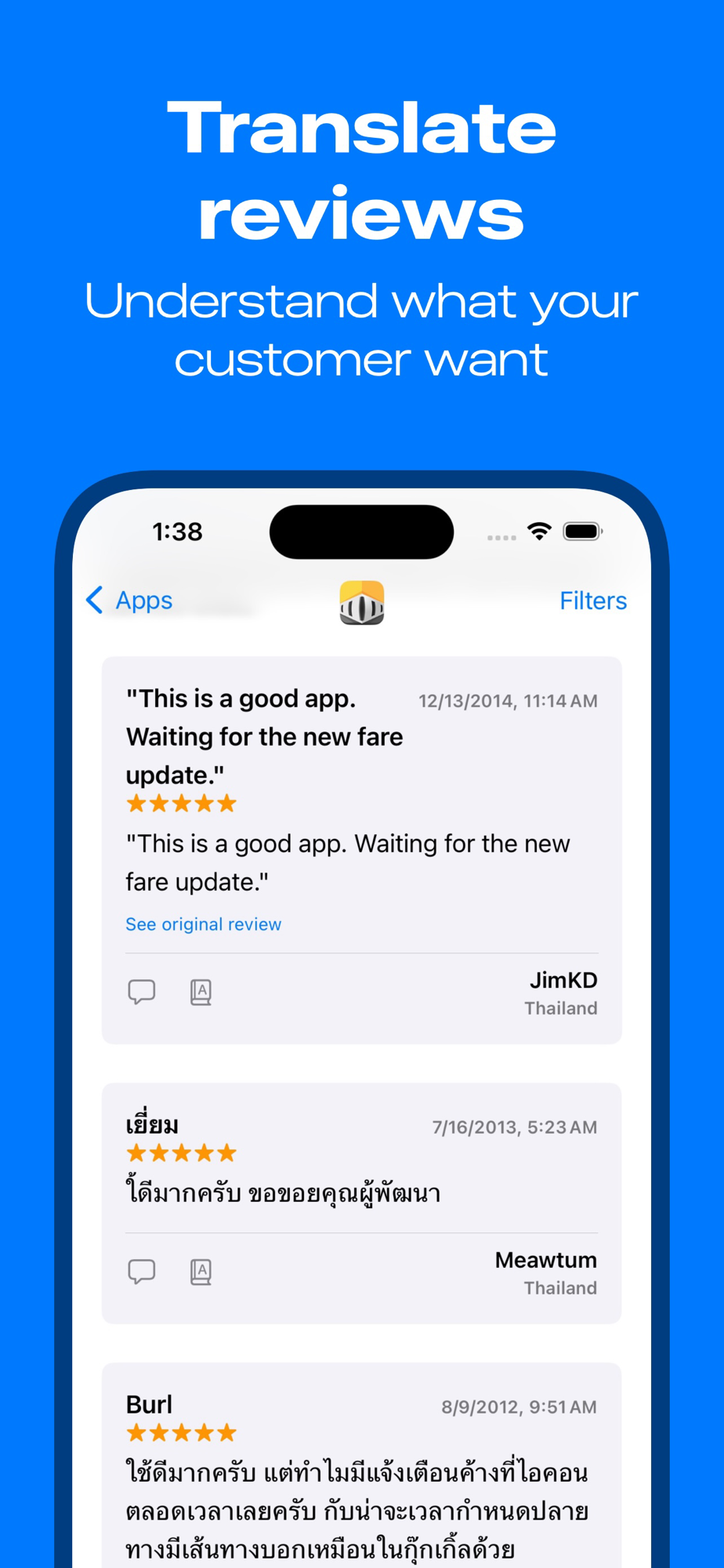 - Translation: Translate a review into your preferred language.