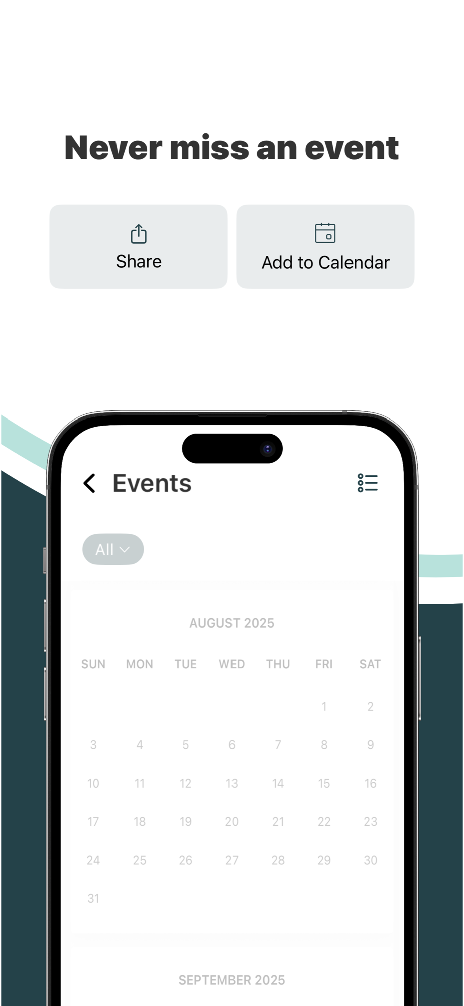 The event section shows a list of events throughout the district. Users can add an event to their calendar to share the event with friends and family with one tap.