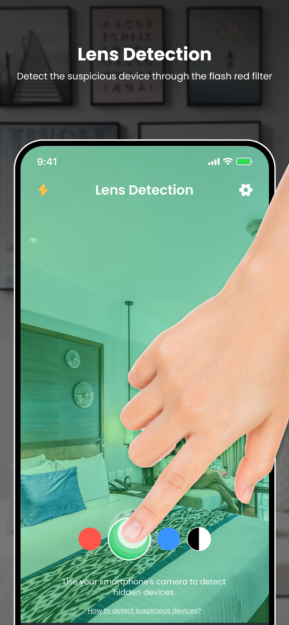 Scan any room for hidden devices using your phone's camera. This app will highlight red dots that may indicate a concealed device. Detect spy devices and ensure your privacy with suspicious targeting displayed on your screen.