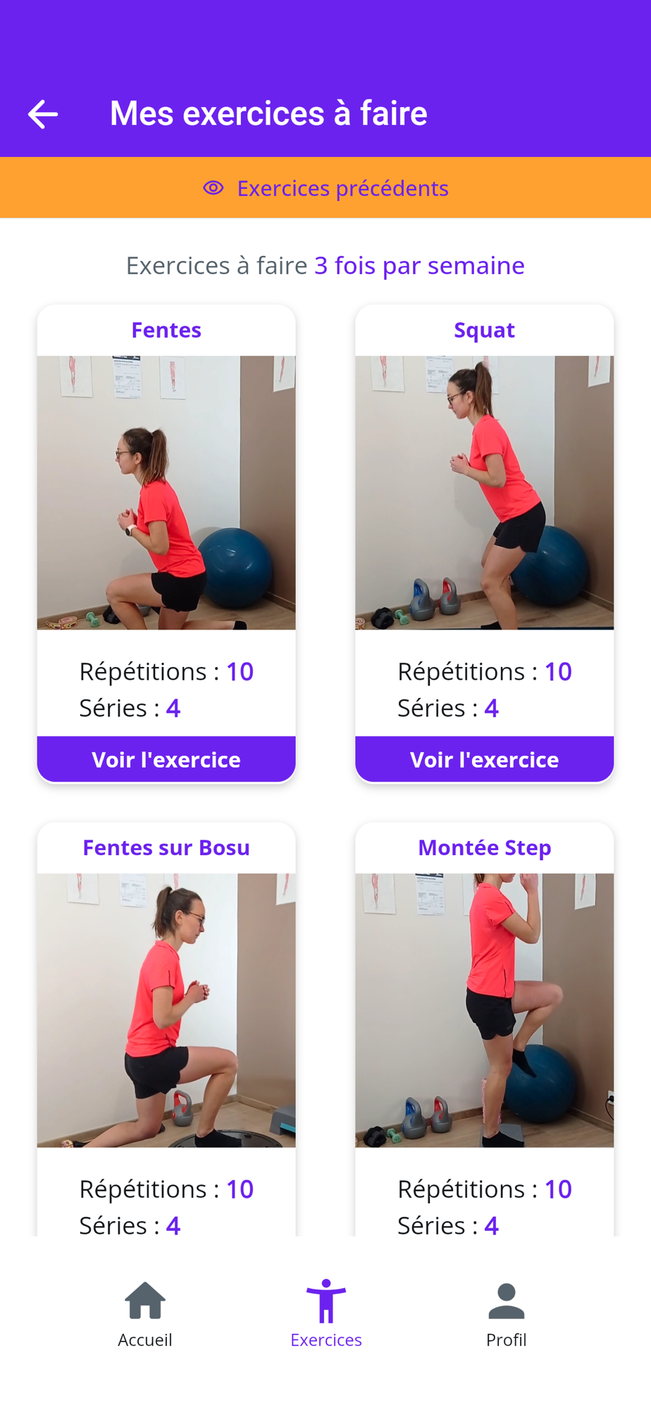 Accès à une base de données exhaustive : Les patients abonnés peuvent accéder à une large bibliothèque d'exercices pour poursuivre leur rééducation en toute autonomie.