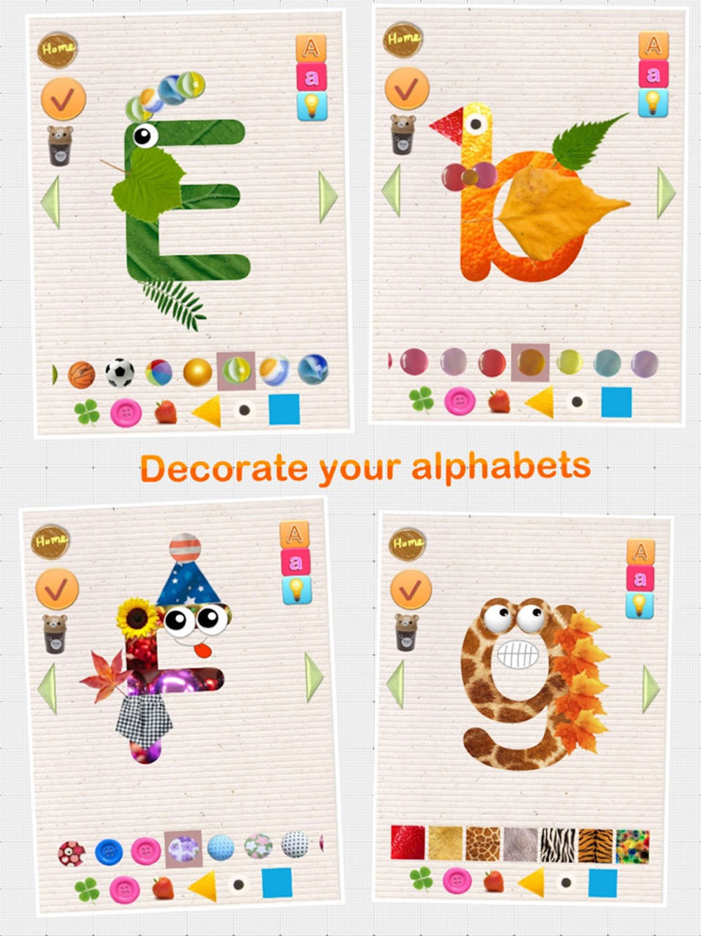 The app takes advantage of new technology to make education something that your child can look forward to. No longer will a child feel intimated by the challenge of learning new words or phrases. With Decorating Alphabets, your child can learn easily with this intuitive, well developed, beautiful designed app.