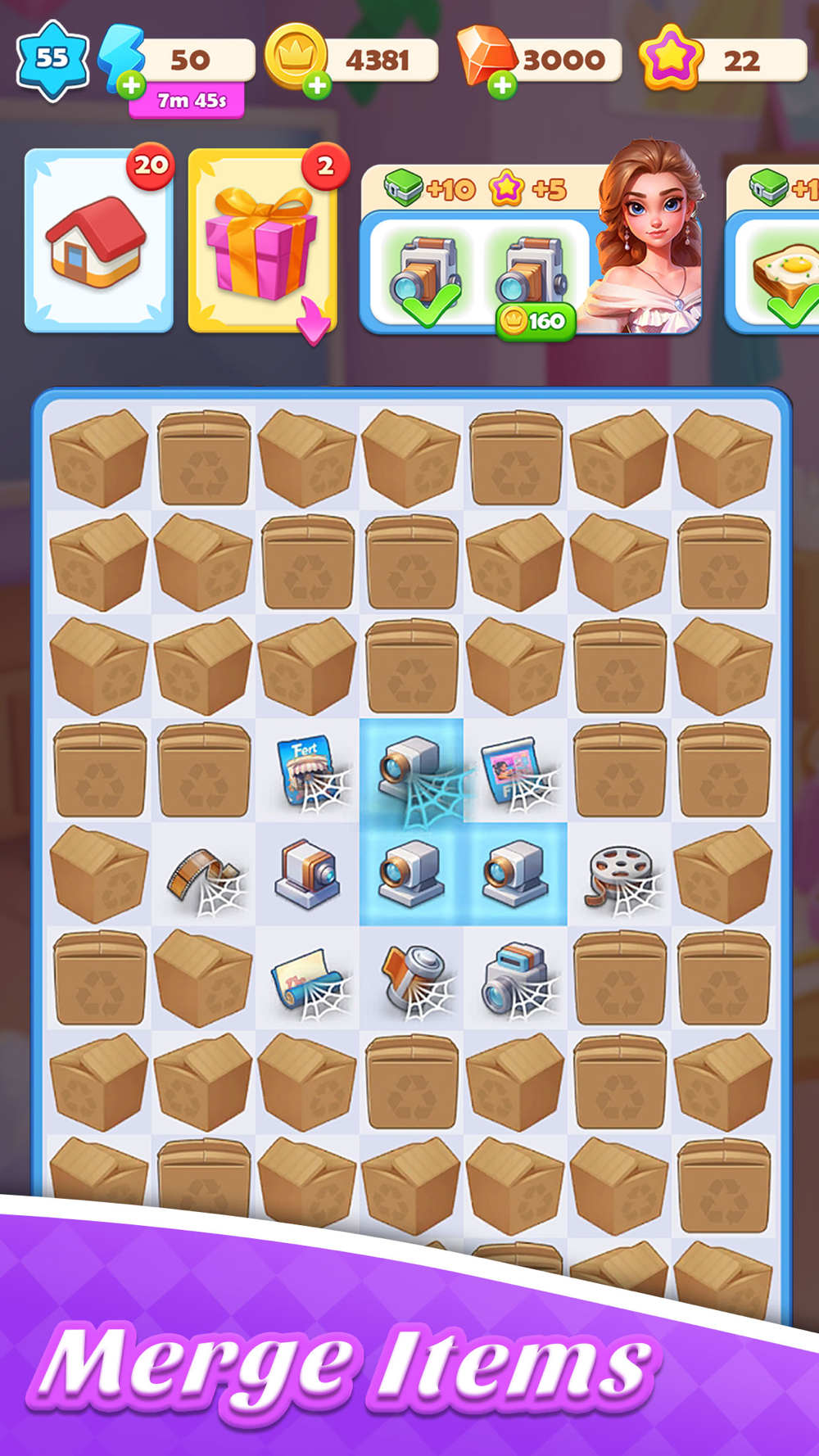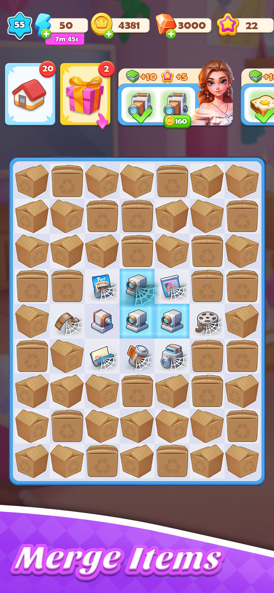 You will assist Princess Alina in renovating this ancient castle to meet modern living needs while preserving its unique historical and cultural charm. By merging two identical items to create higher-level items, you can unlock new resources and decorations, gradually transforming the castle into a dream home that seamlessly blends modernity with classic elegance. Get ready to unleash your creativity and create a stunning royal design!
