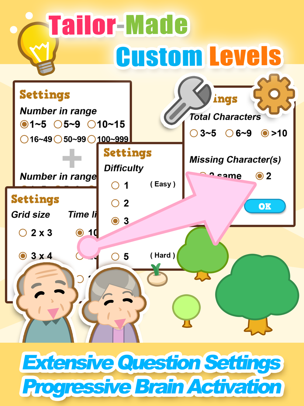 Customising the games according to individual needs, with adjustable difficulty levels and type of training, avoids seniors being discouraged by overly difficult levels, while still enjoying the fun of a challenge.