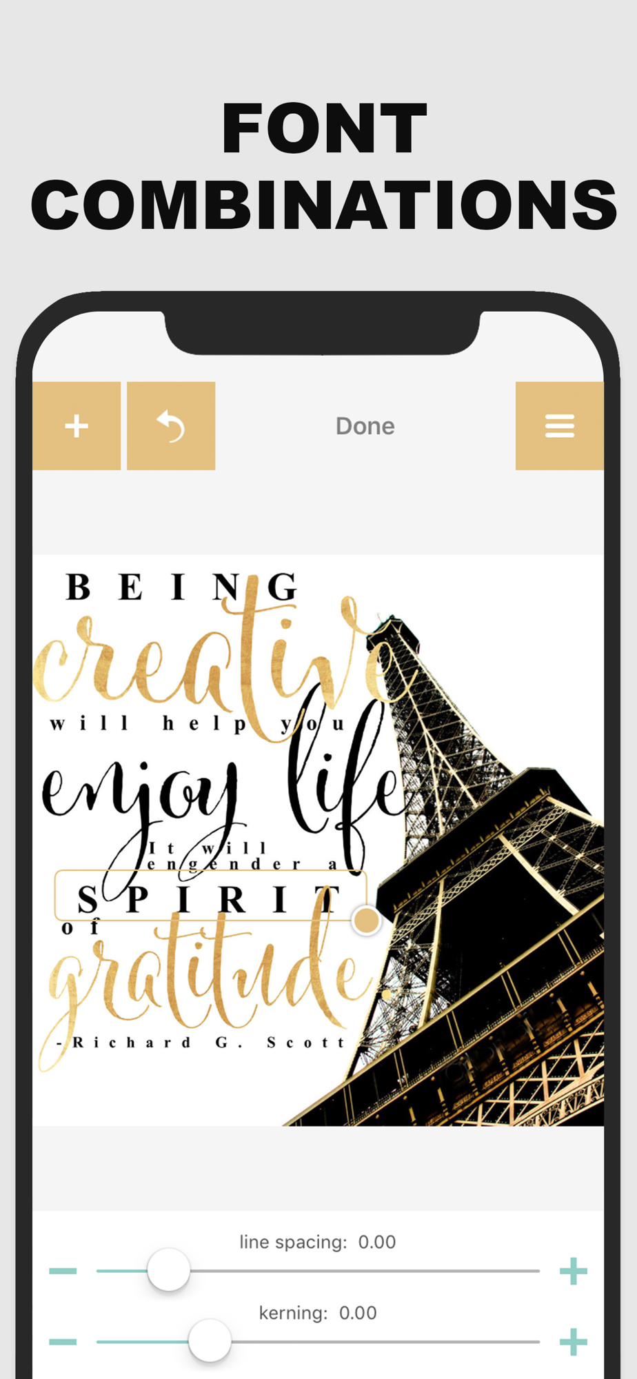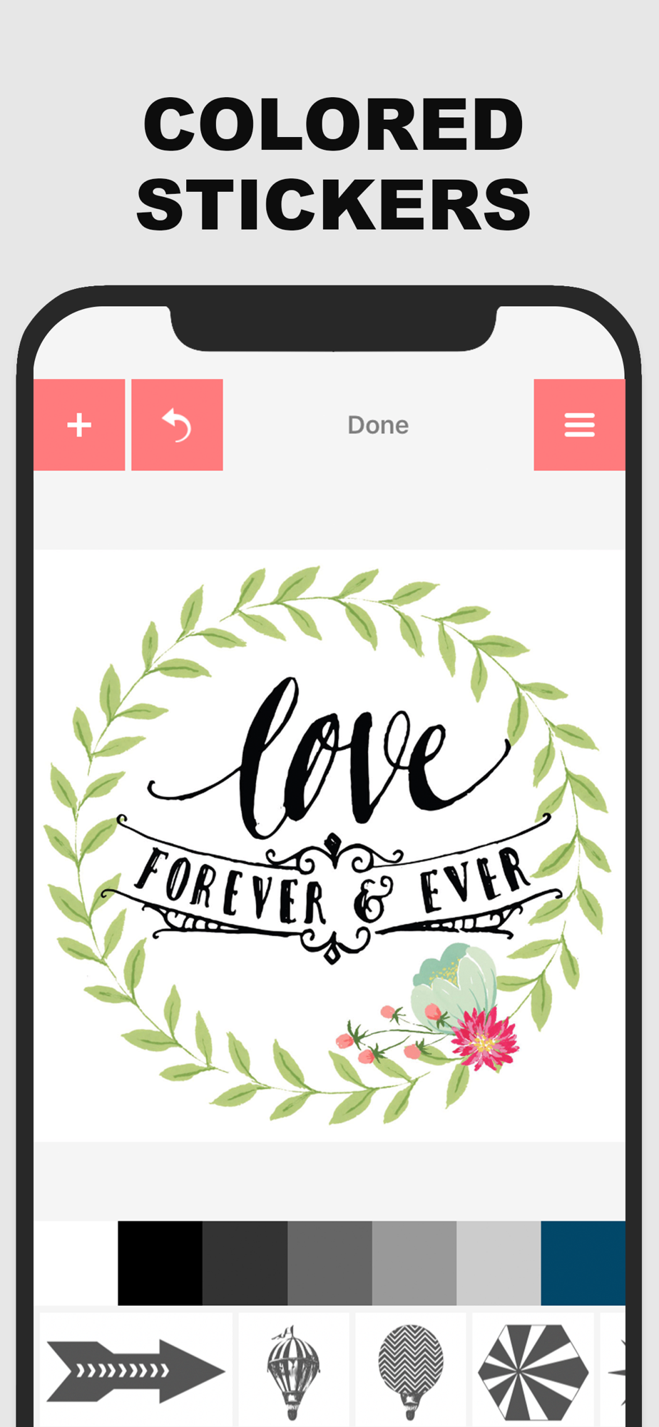 Adjust transparency, color, shadows, outlines, size & angles as you create with the text & design features.