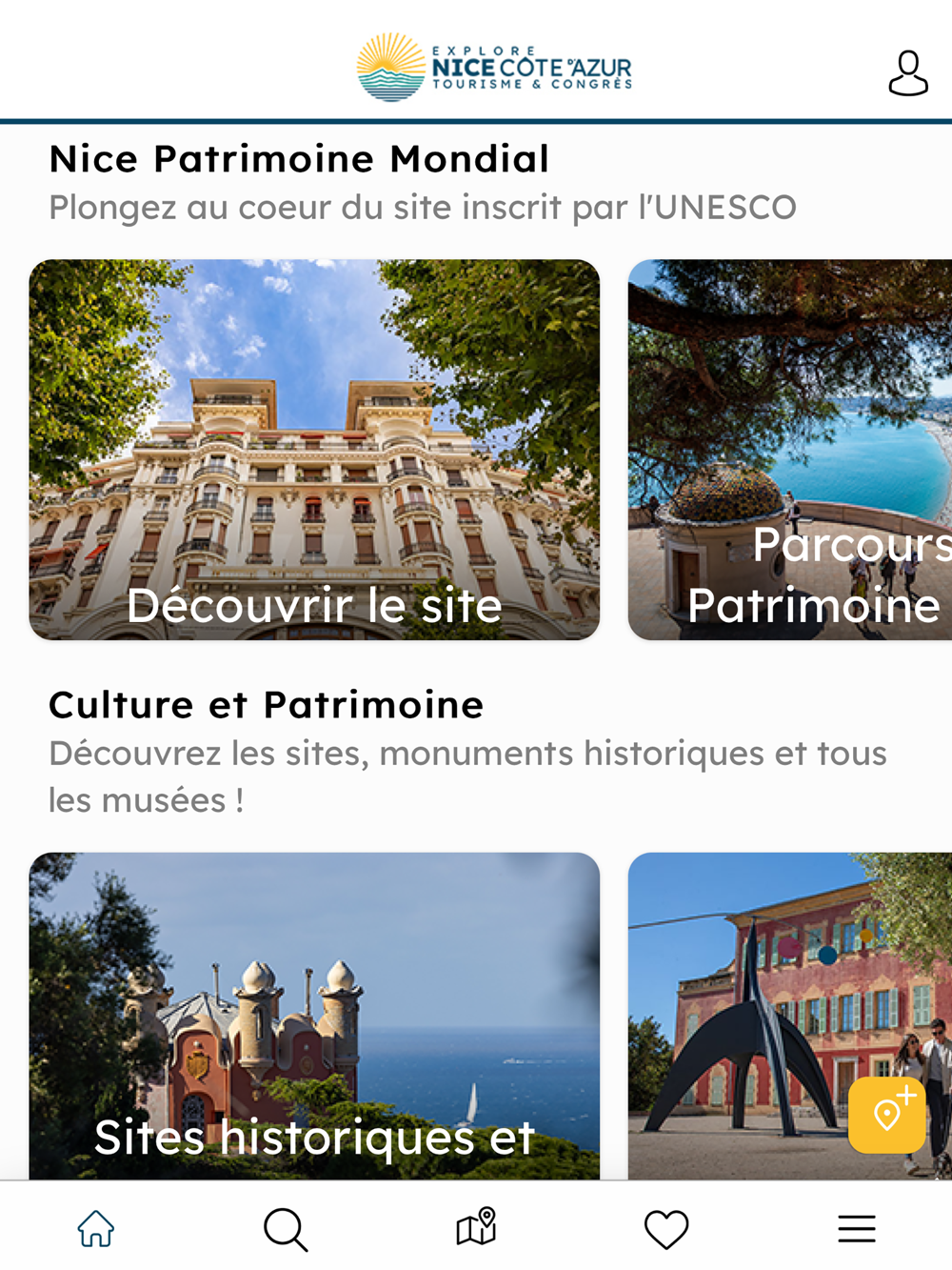 Discover the diversity and richness of the Nice Côte d'Azur area with the brand new version of the Nice Côte d'Azur app. The Nice Côte d'Azur Metropolitan Convention and Visitors Bureau invites you to explore the destination's 51 communes through themed routes to suit all tastes!