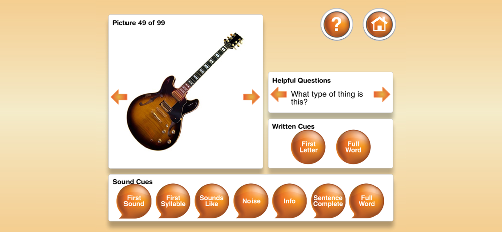 *British English version Talk Around It Home helps people with word finding difficulties to practise Naming Techniques and improve Word Retrieval. Developed by Speech and Language Therapists, Talk Around It uses evidence-based techniques to treat conditions such as aphasia, anomia, stroke, dementia, alzheimer’s and autism. It now includes over 100 high quality pictures with support for high-density Retina displays, over 900 Cues, Testing and Progress Reports to document patients’ progress.