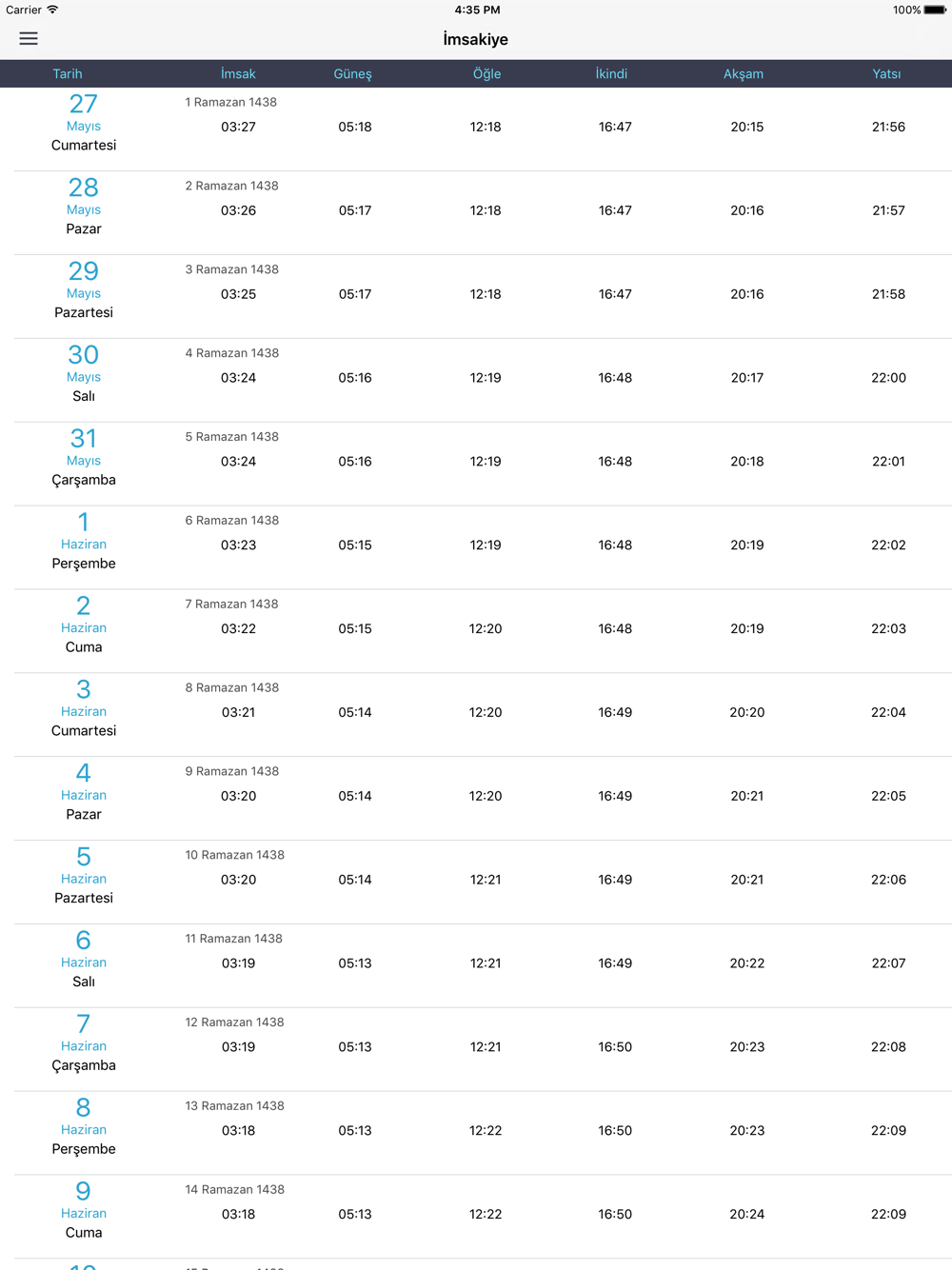 1- Türkiye tüm iller ve dünyadaki bütün şehirler için imsakiye bilgileri,