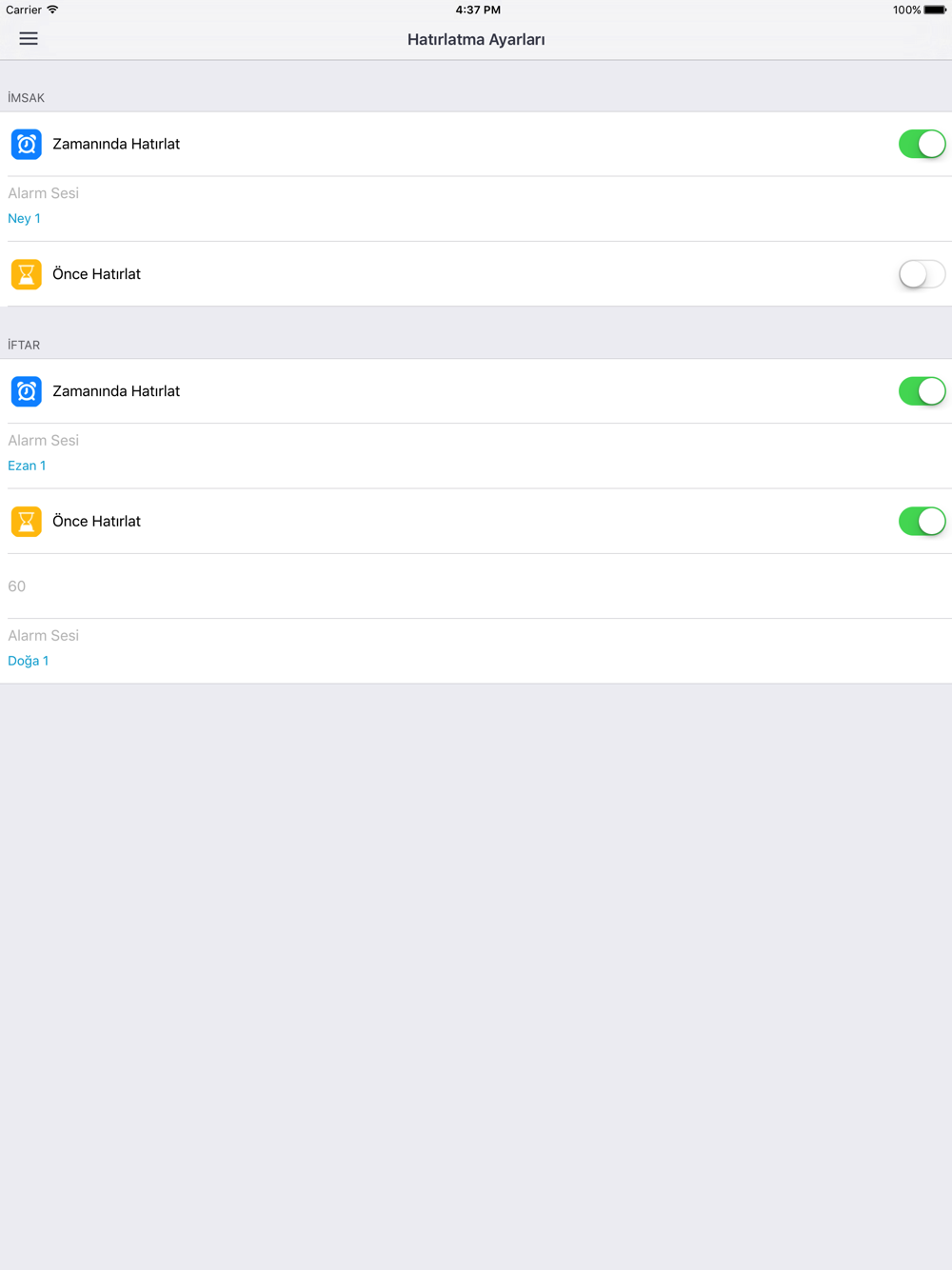 2- 5 adet konum için imsak ve iftar vakti hatırlatma özelliği,