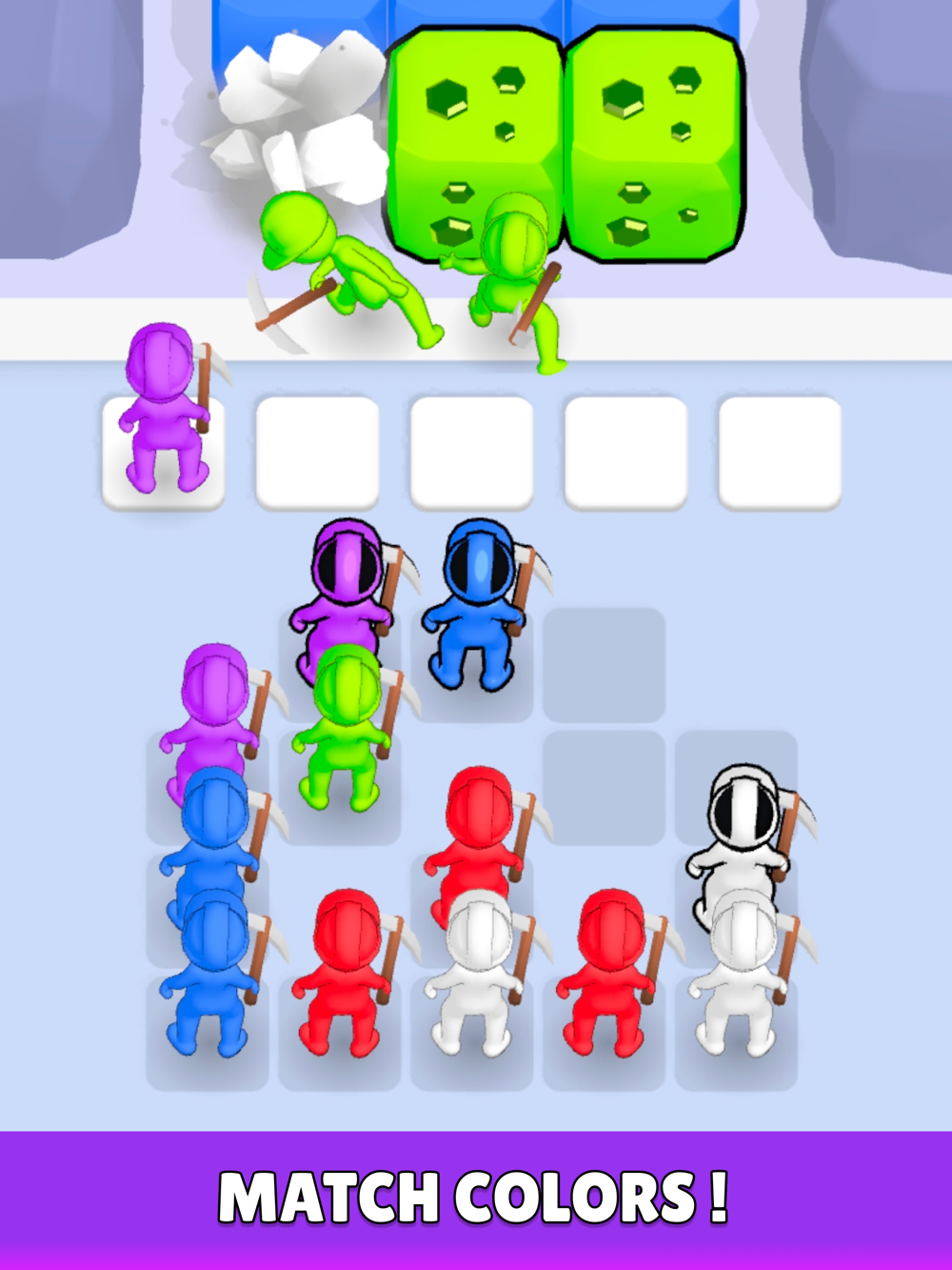 In this exciting Miner Jam game, miners are eagerly waiting to dig deep into the earth. Sort them by color and send them down into the mines to unlock new levels!