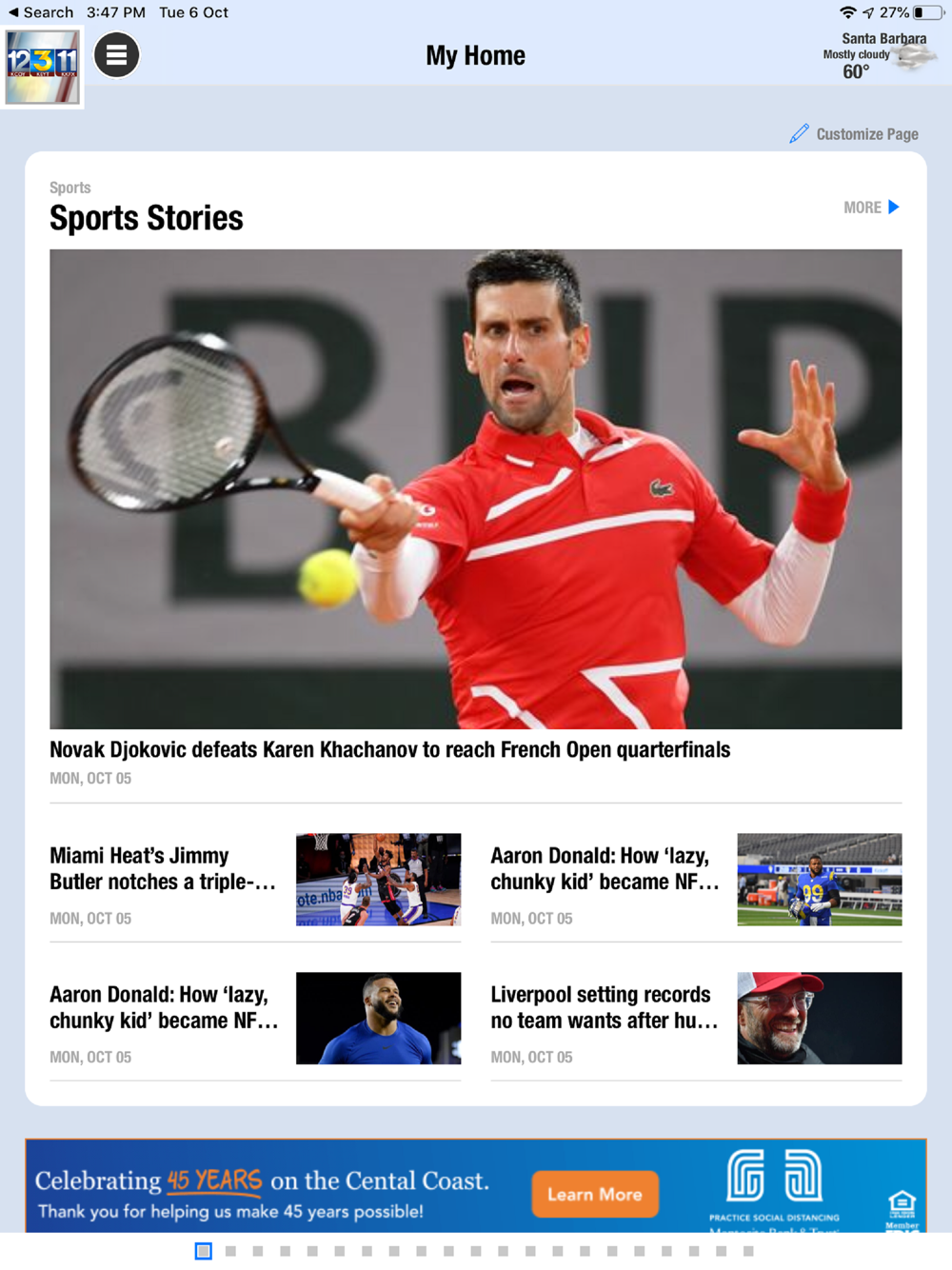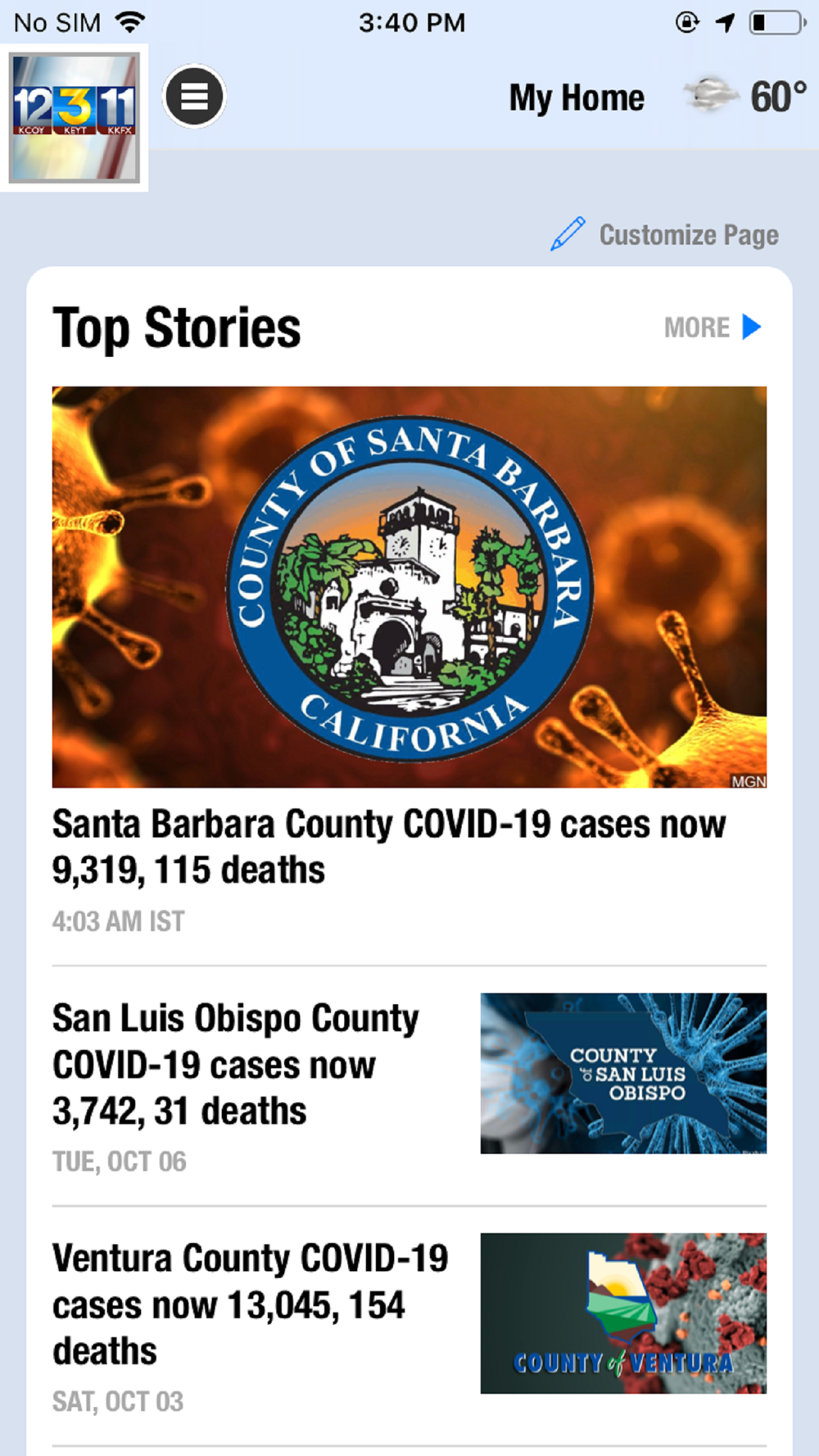 The NewsChannel 3-12 app provides instant access to the latest local news, custom weather forecasts, traffic updates, and local sports for the California Coastal region including Santa Barbara and San Luis Obispo Counties as well as the parts of Western Ventura County.