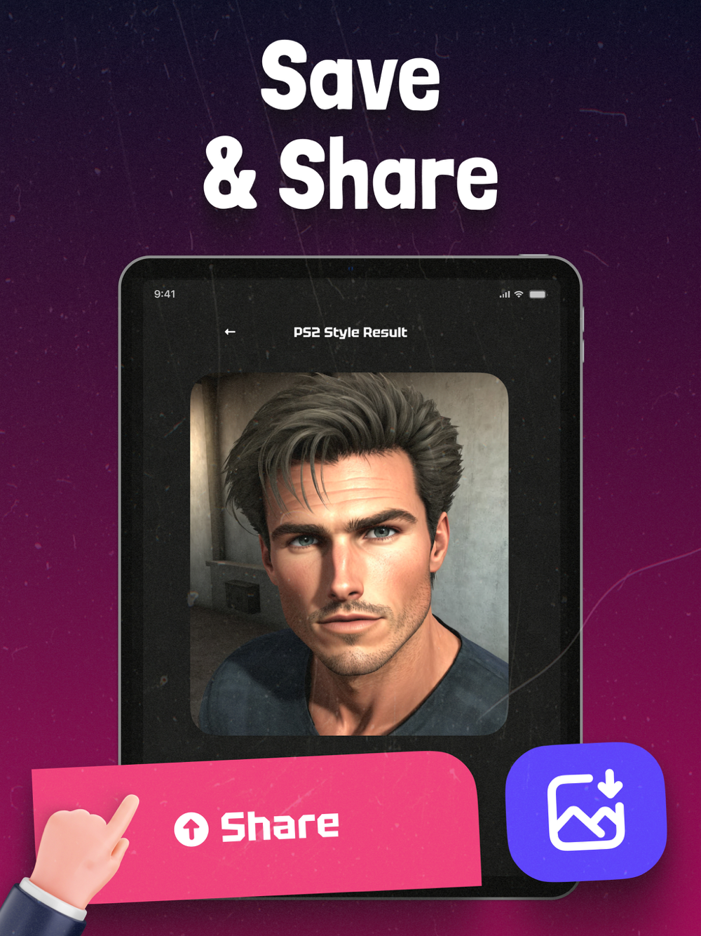 PS2 Filter: AI Photo Effects is an easy-to-use app that transforms your photos into the iconic style of the PS2 era. Simply upload an image from your gallery or take a new one, and the app will generate a stunning PS2-style result. You can save or share your creations with friends and keep track of all your filtered images in the built-in library. Perfect for adding a nostalgic, retro vibe to your shots.