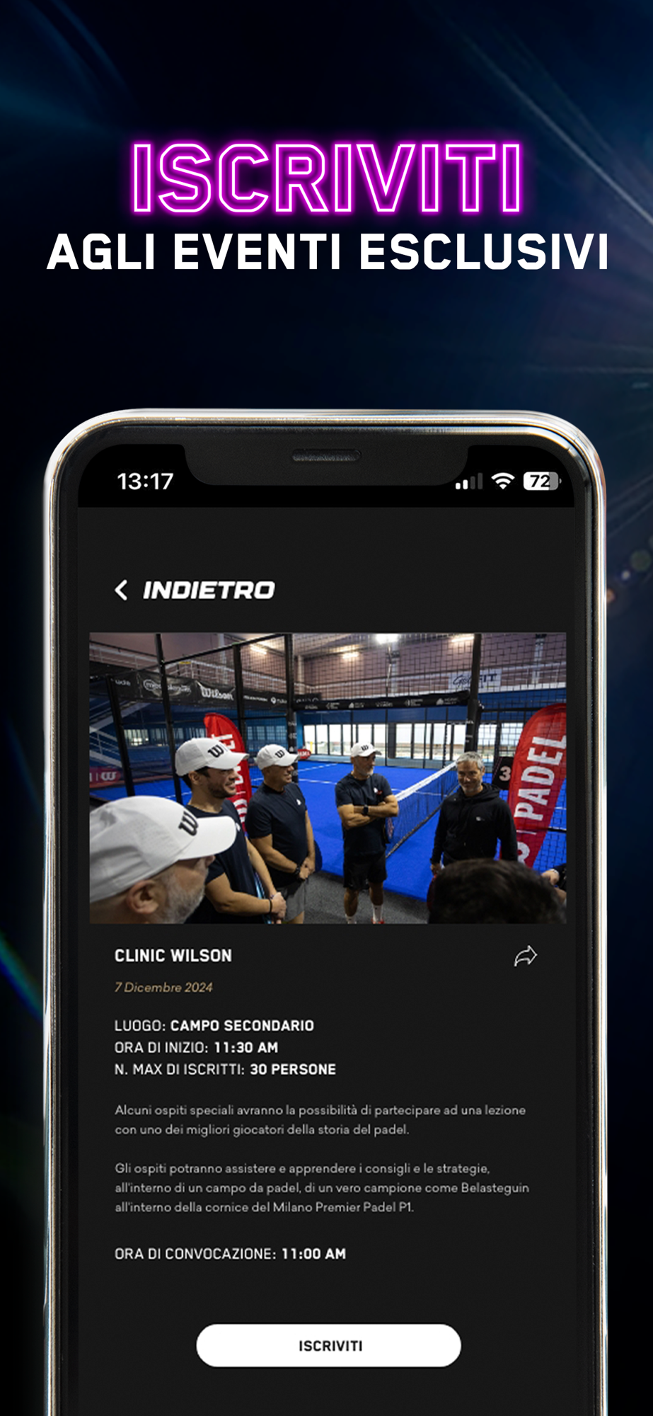 L'app offre un accesso diretto al negozio ufficiale, permettendo agli utenti di acquistare merchandise dell'evento e prodotti correlati al padel.