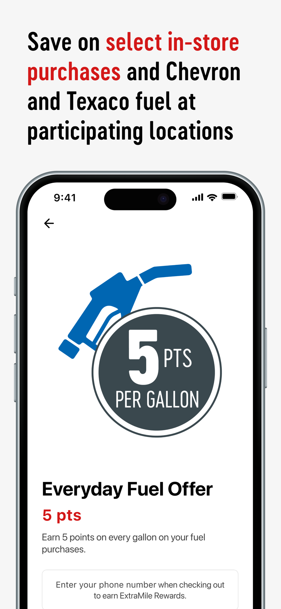 ExtraMile, Chevron and Texaco apps all have the same features and functions, all accessing the same points and rewards balances. Get exclusive offers, track Club Program card punches, earn points for rewards on Chevron and Texaco fuel and enjoy mobile pay. PLUS, receive an EXTRA special Welcome offer!