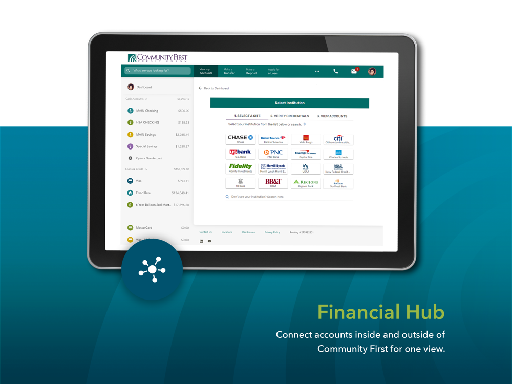 • See your complete financial picture: easily connect accounts inside and outside of CFCU