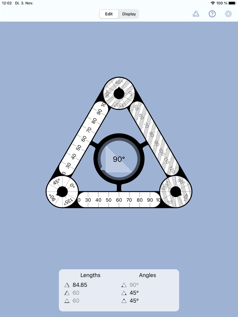 The commercial versions Trivice and Trivice HD can additionally calculate the area, height, perimeter, incircle and circumcircle. They also offer the input of fraction digits and a history to recall the most recent calculations.
