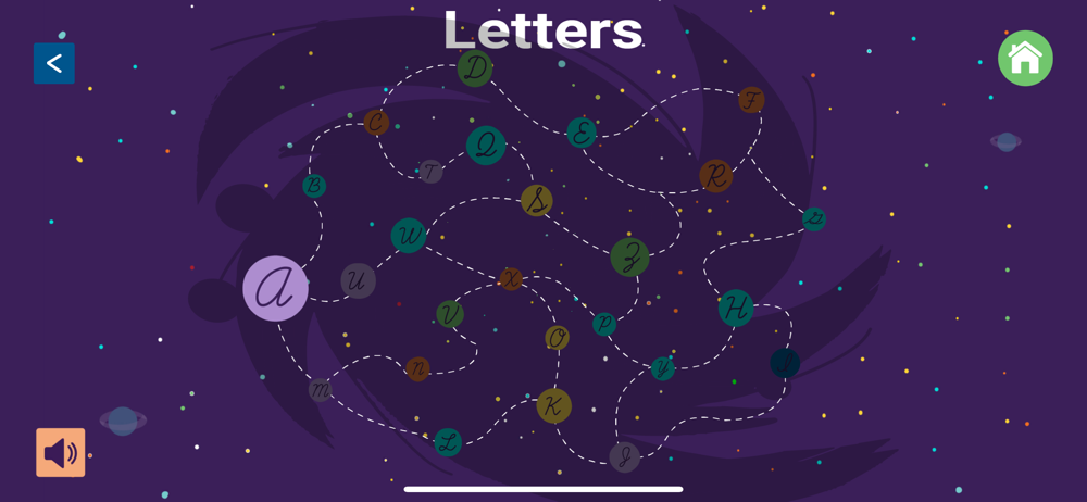 Explore the cosmos: Travel through stunning cosmic landscapes, from swirling nebulas to distant planets, all while honing their cursive writing skills.