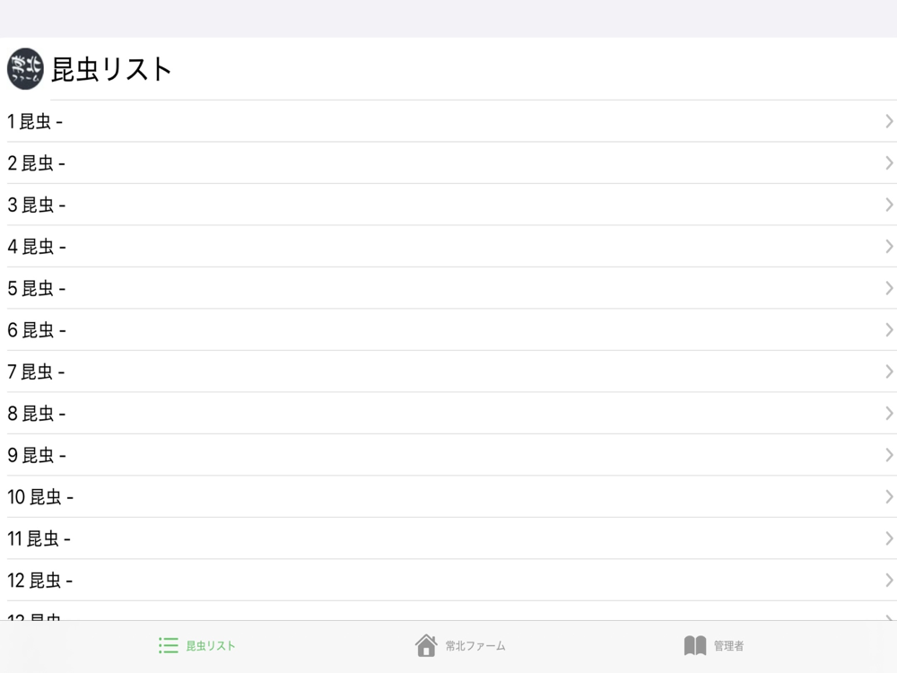 茨城県にある昆虫専門店常北ファームが提供する昆虫管理アプリです。