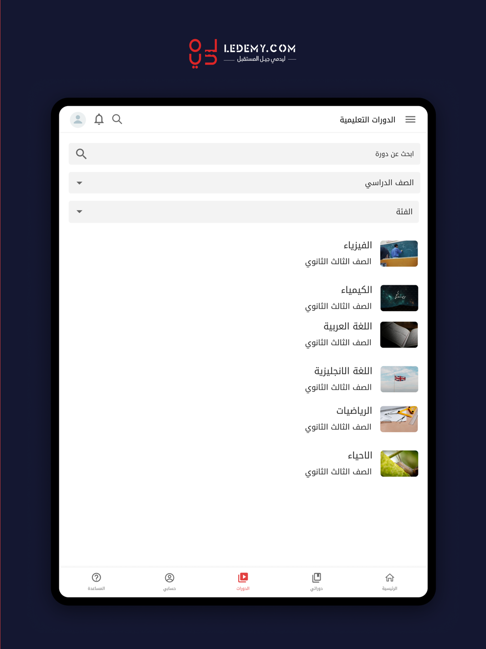 مرحبًا بكم في أكاديمية ليدمي التعليمية، المنصة الرائدة في السودان التي تقدم تجربة تعليمية شاملة ومبتكرة لجميع مراحل التعليم. نسعى لتوفير محتوى تعليمي عالي الجودة وتنمية مهارات التفكير والإبداع لدى الطلاب، مع التركيز على دعم التعلم الذاتي والتحضير لمستقبل مشرق. انضموا إلينا لبناء جسور المعرفة وتحقيق التميز الأكاديمي.
