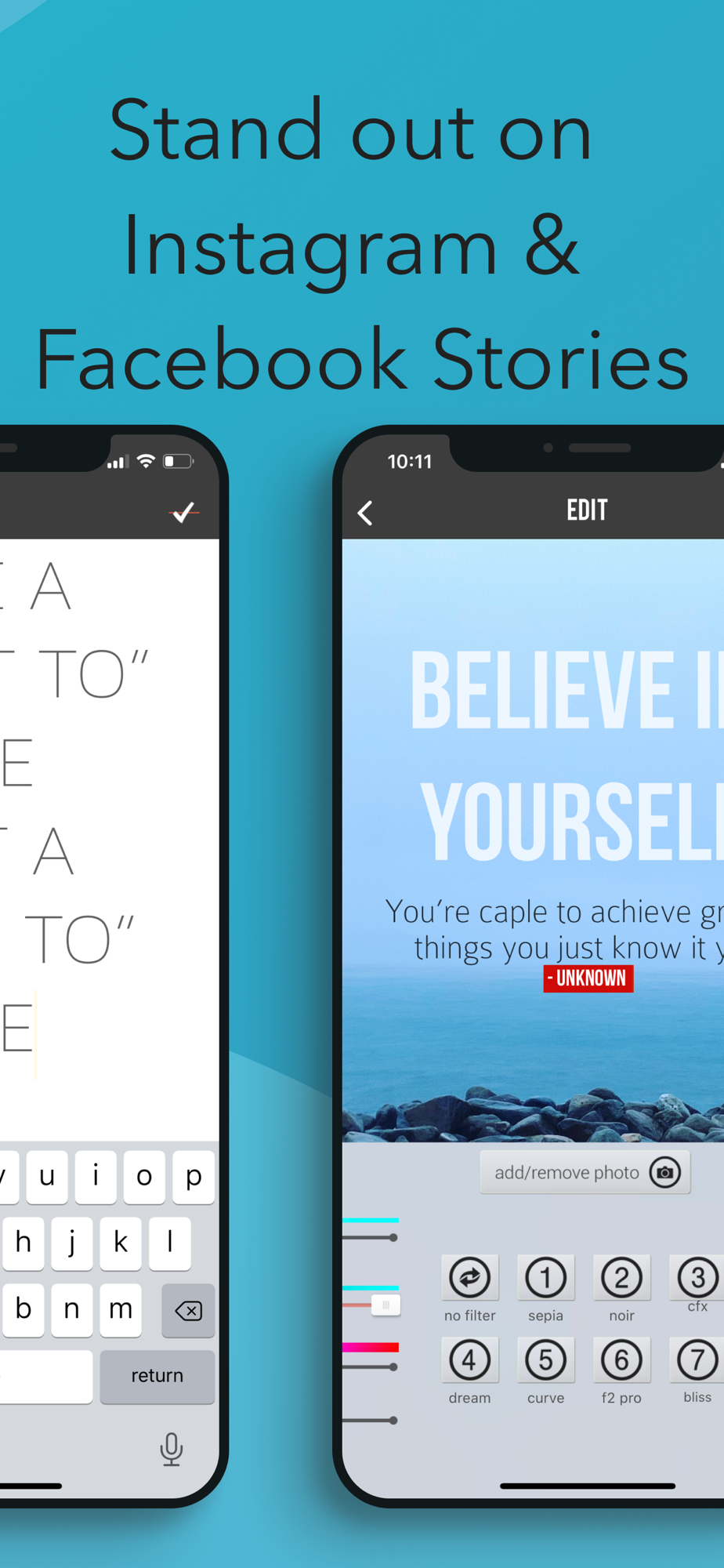 - Take a picture or import one from your camera roll and add beautiful photo filters available in Textograph.