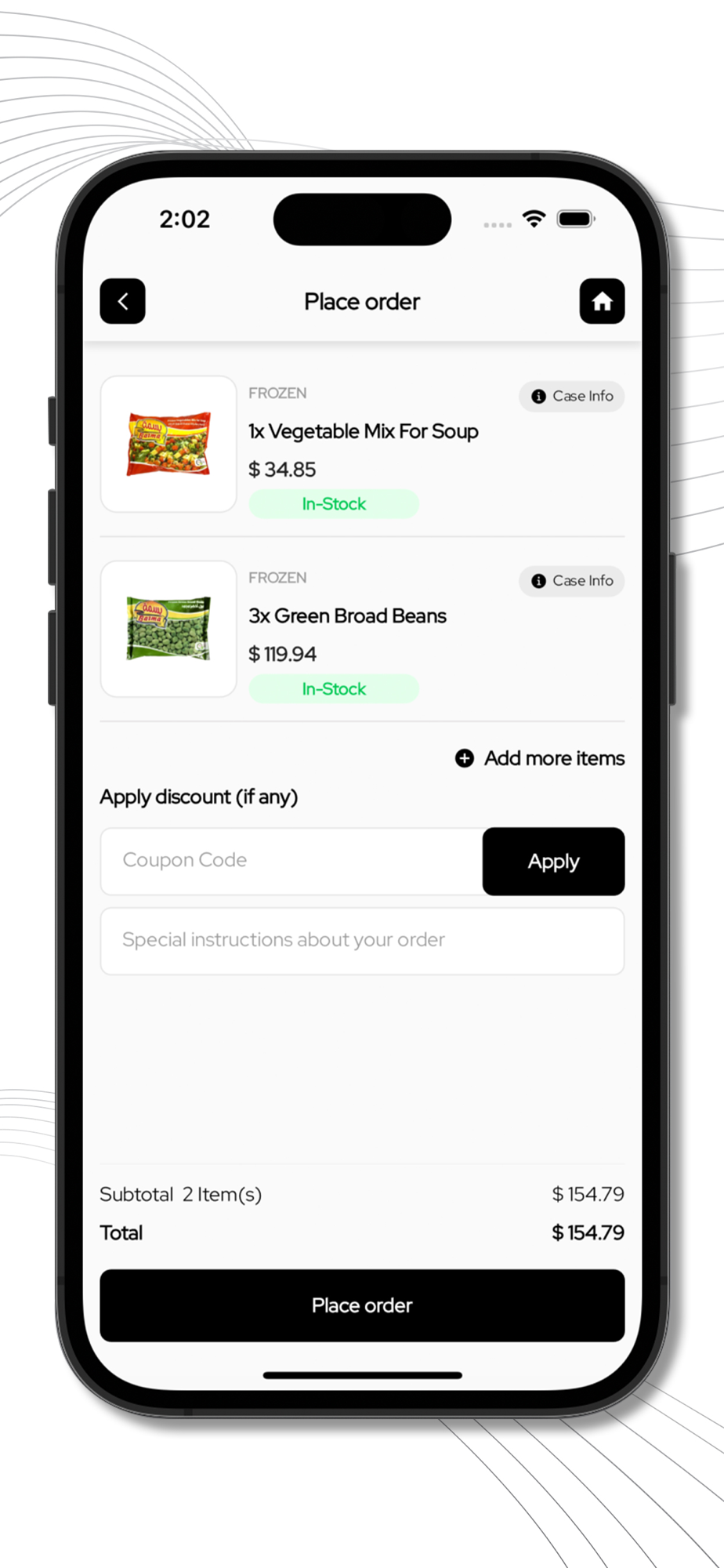 Easily place orders for your clients directly through the app. Whether you’re delivering products on the spot or scheduling shipments from your inventory, our app ensures a seamless ordering process that meets your client's needs efficiently.