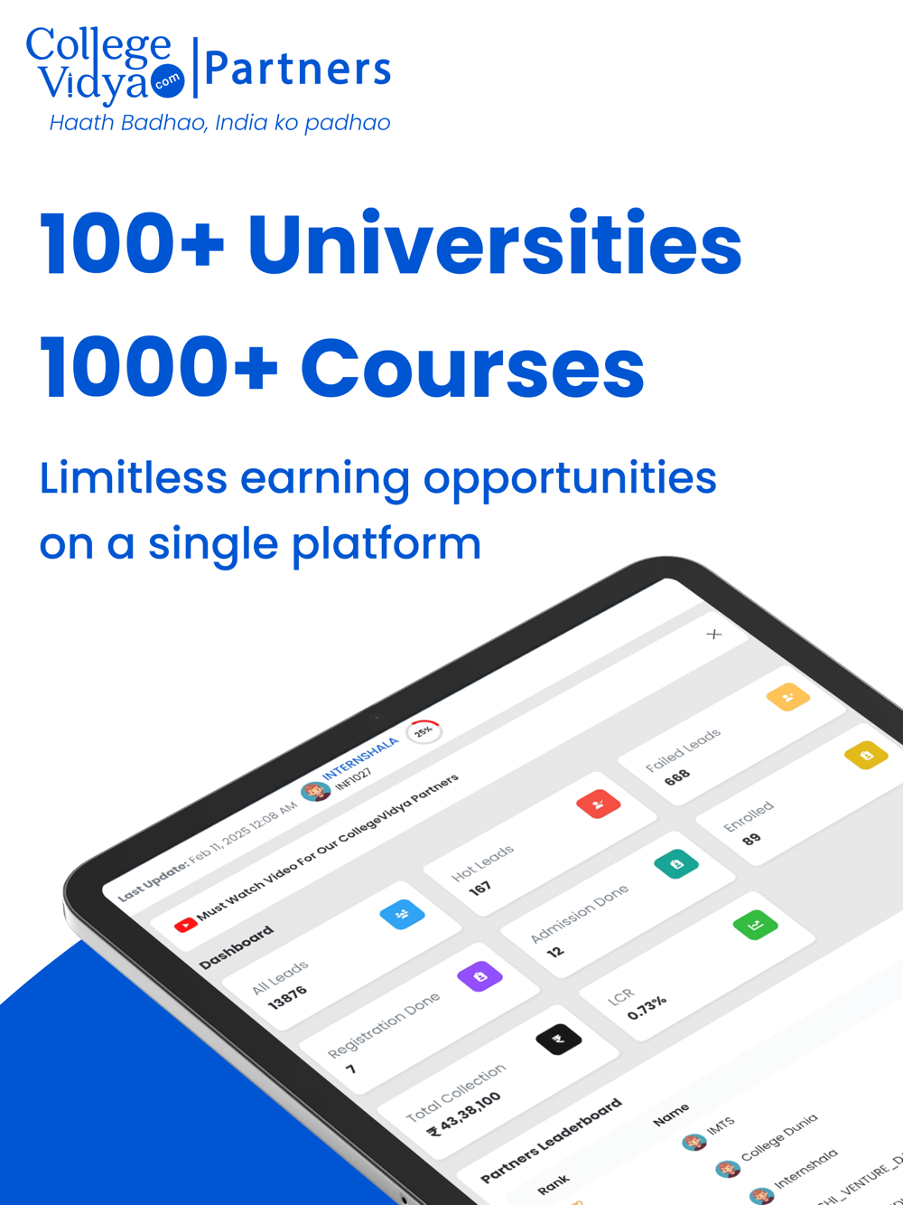CV Partners is a revolutionary platform empowering counselors and mentors to connect students with the best online universities and EdTech programs. With zero investment, you can expand your offerings, work flexibly from anywhere, and maximize your earnings through incentives and commissions. Get 24/7 support, access to India’s leading universities, and the opportunity to shape students' futures. Join CV Partners today and become a recognized education consultant while growing your career and income effortlessly!