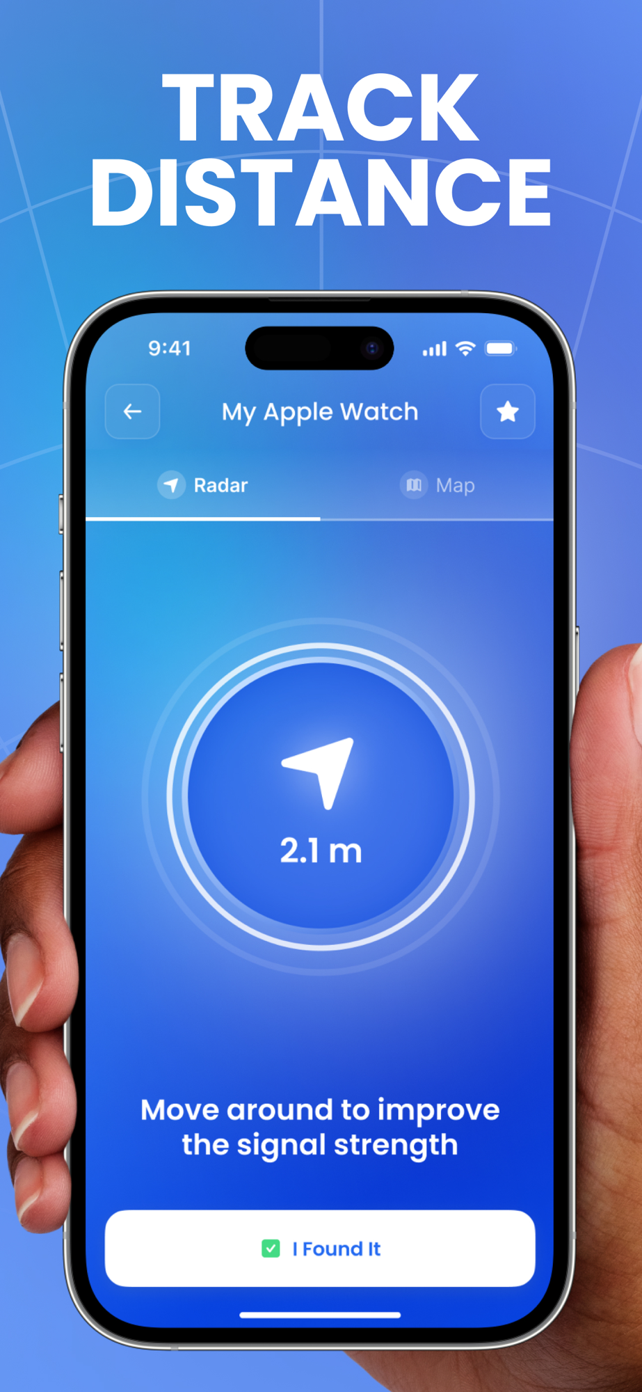 - Distance Tracker: Displays proximity to your device using a percentage scale—the higher the percentage, the closer you are.