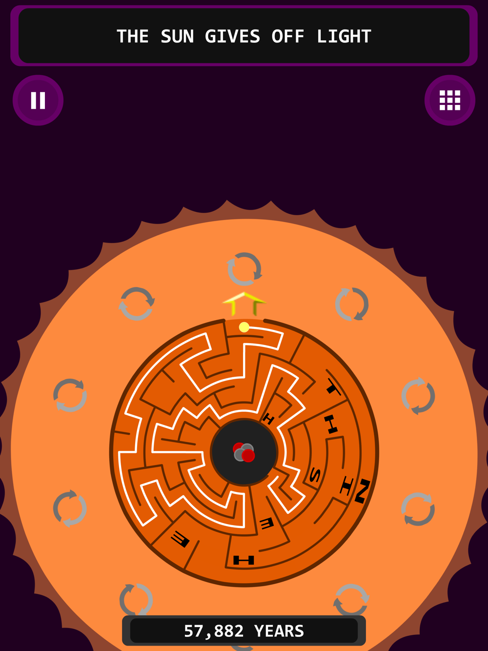 Light can take tens of thousands of years to get from the fusion core of a star to its surface. Can you do better? Steer the photon through the maze, collect letters, and build a phrase to help you escape. The game includes twenty seven different mazes corresponding to stars ranging from red dwarfs to blue supergiants!
