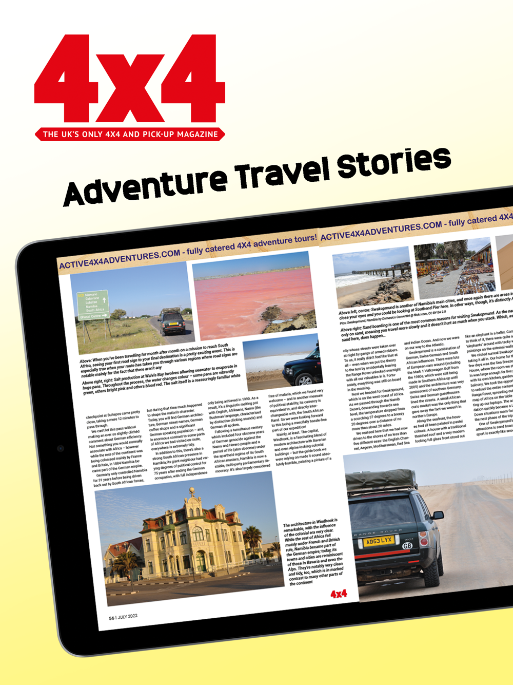Features include: Expedition stories and travel advice; 4x4-related product coverage; new vehicle news and reviews; used buyers’ guides; modified vehicle profiles; step-by-step guides to green lane routes; workshop and project vehicle features; club and event coverage.
