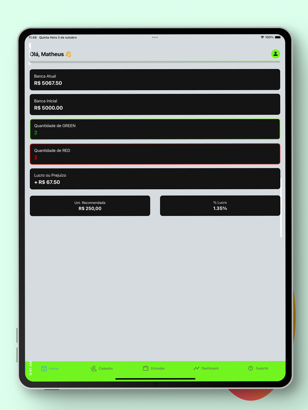 Controle Total: Registre todas as suas entradas e saídas de forma rápida e precisa, garantindo o controle absoluto sobre sua banca.