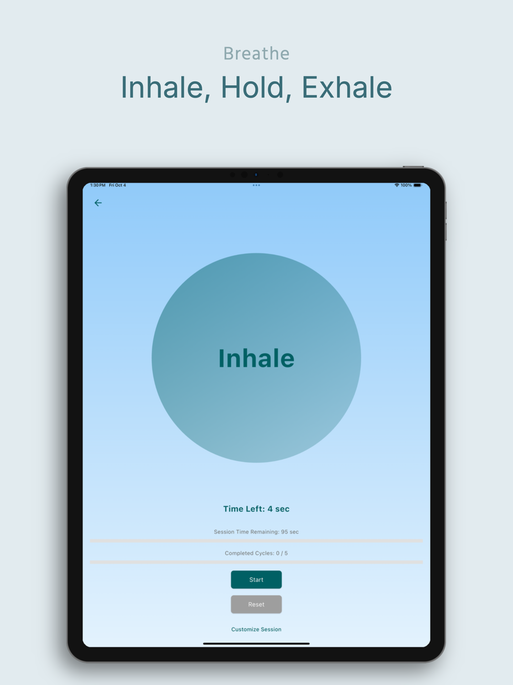 Tailor each session to your unique needs. Set the duration and pattern for inhaling, holding, and exhaling to create a personalized breathing experience that works best for you.