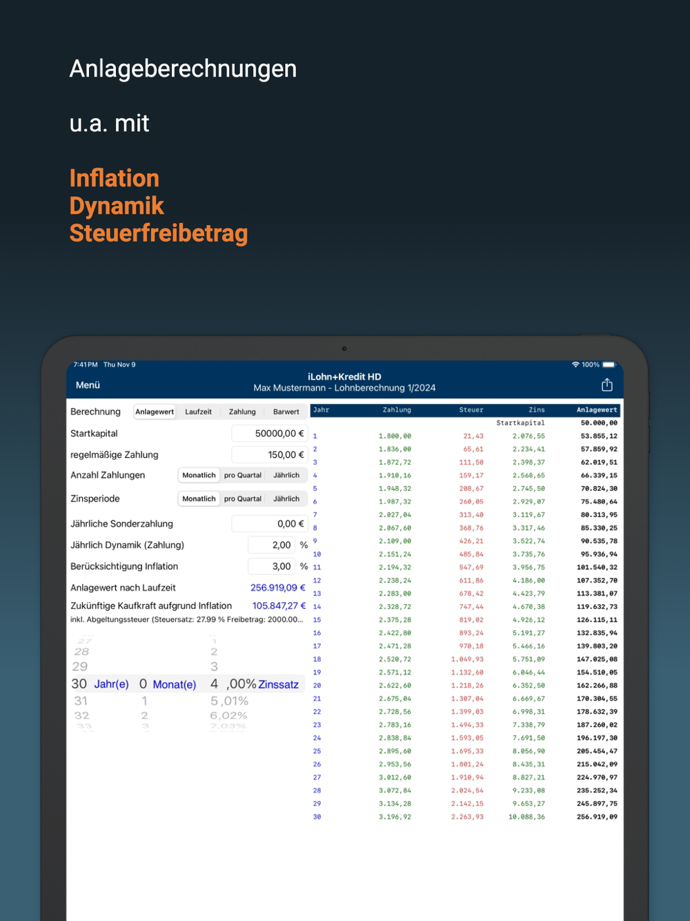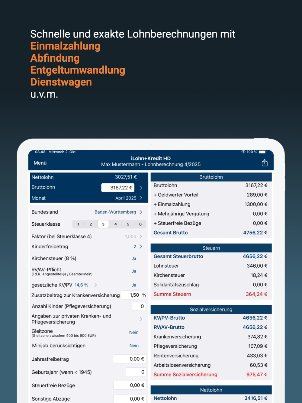 iLohn+Kredit HD 2025 - Der Finanzrechner für Ihr iPad