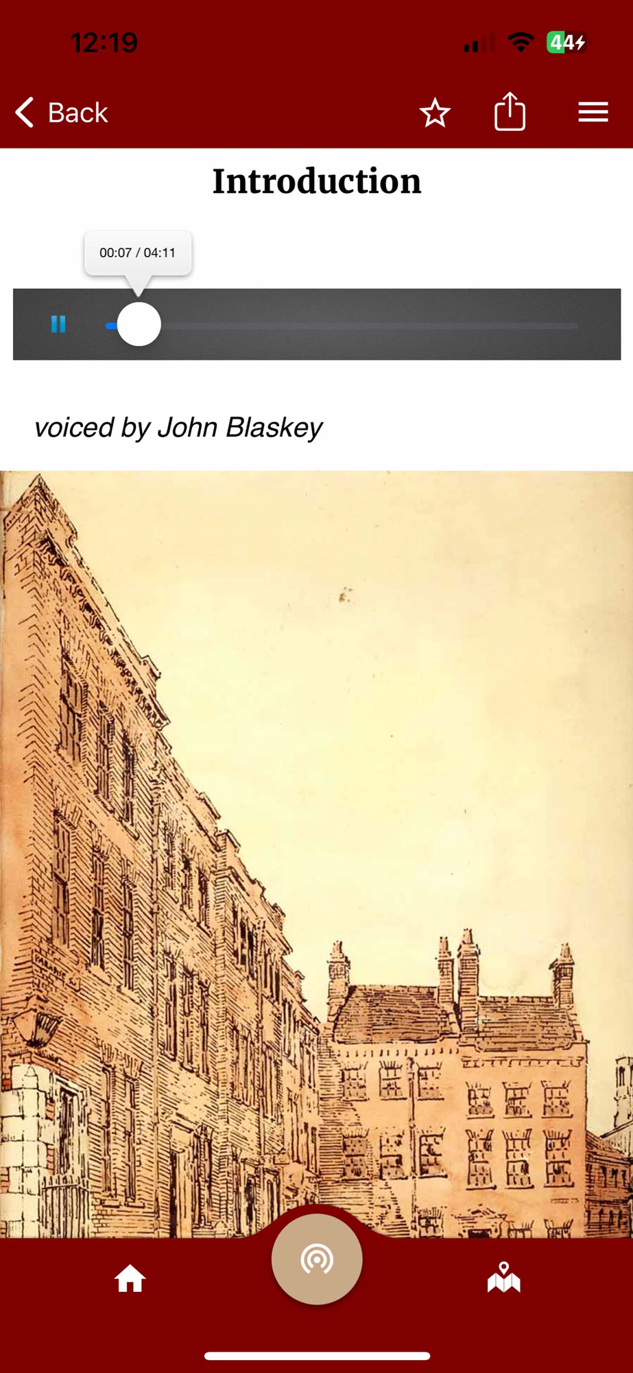 The app is GPS enabled. This is used to show you relevant content based on your location. Please note that you do not have to be in Sheffield in order to access any of the content in the app.