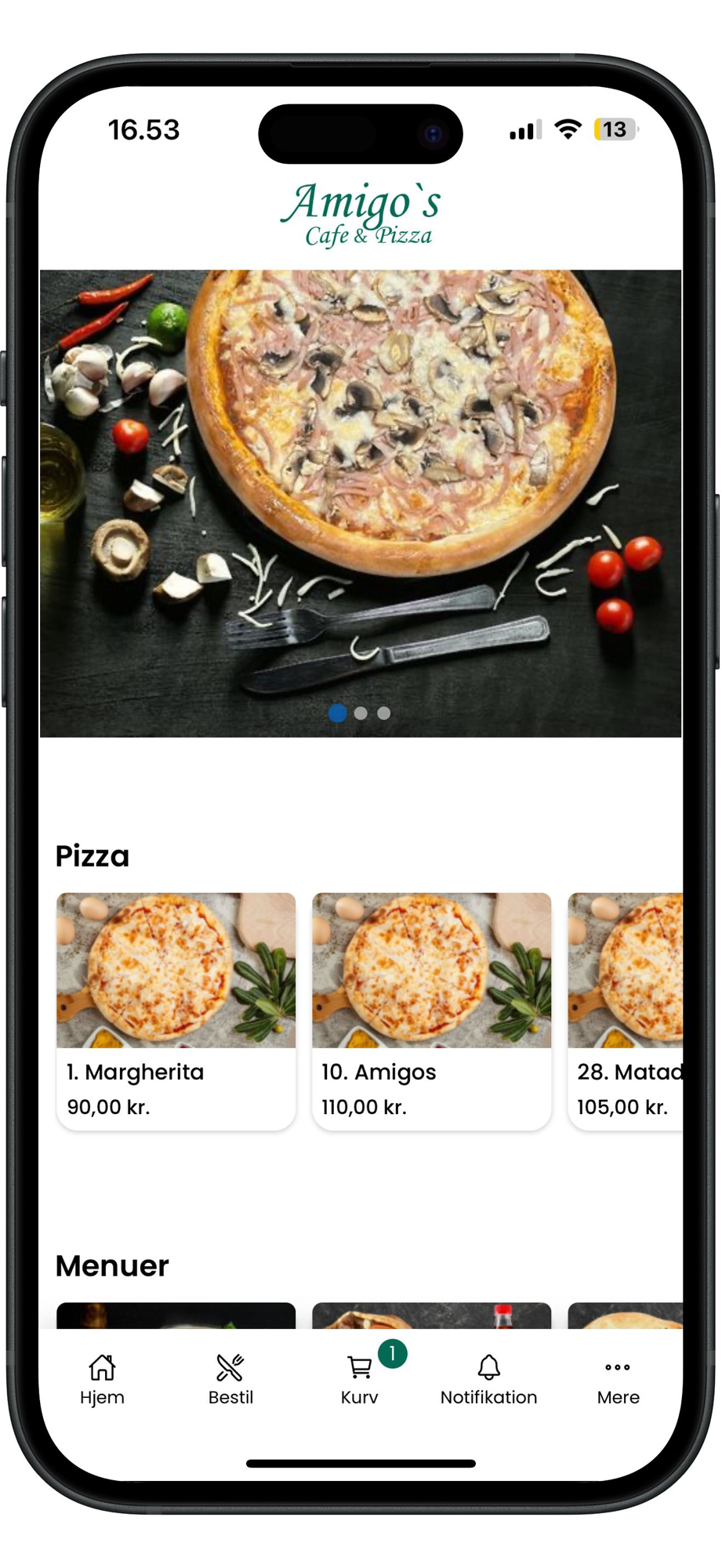 Med Amigos Cafe & Pizza app'en er dine yndlingsretter altid inden for rækkevidde. Vores app gør det nemt for dig at bestille frisklavet pizza, burger, durum og meget mere med blot et par tryk.