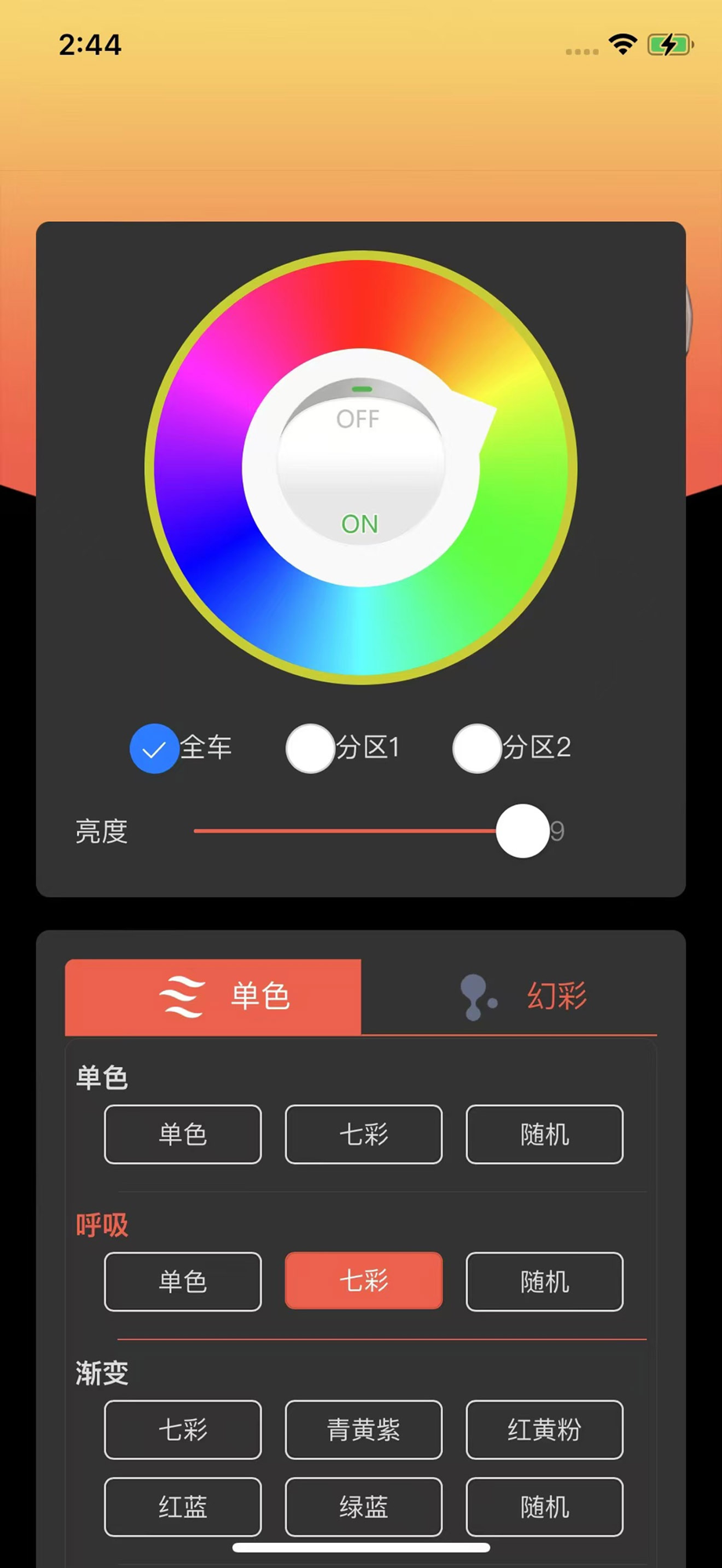 Setting the brightness, monochrome, iridescent, and welcoming modes of car ambient lighting