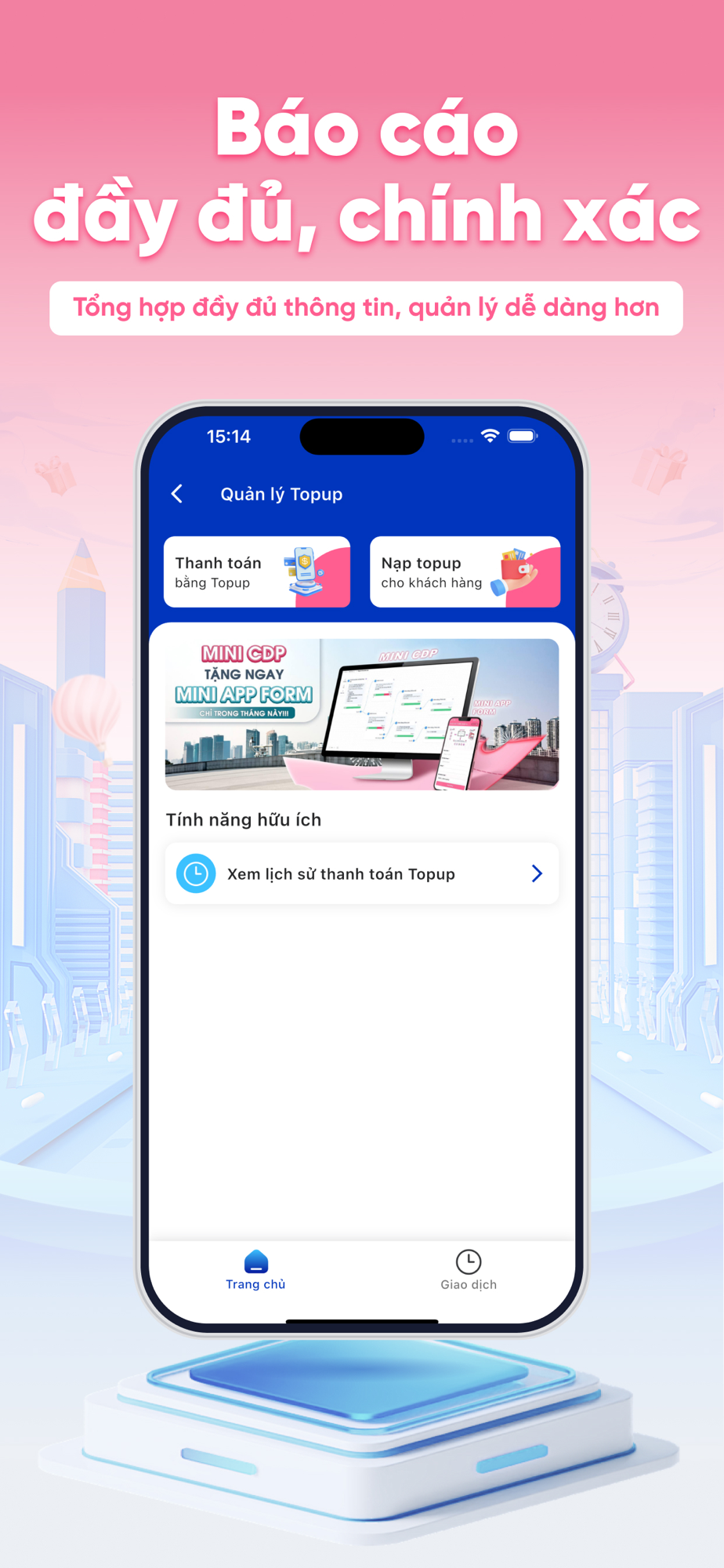Dịch vụ nạp tiền: Cho phép khách hàng dễ dàng nạp tiền vào tài khoản hoặc các dịch vụ trả trước trực tiếp tại cửa hàng của bạn, mang lại sự tiện lợi và thu hút khách hàng quay lại mua hàng.