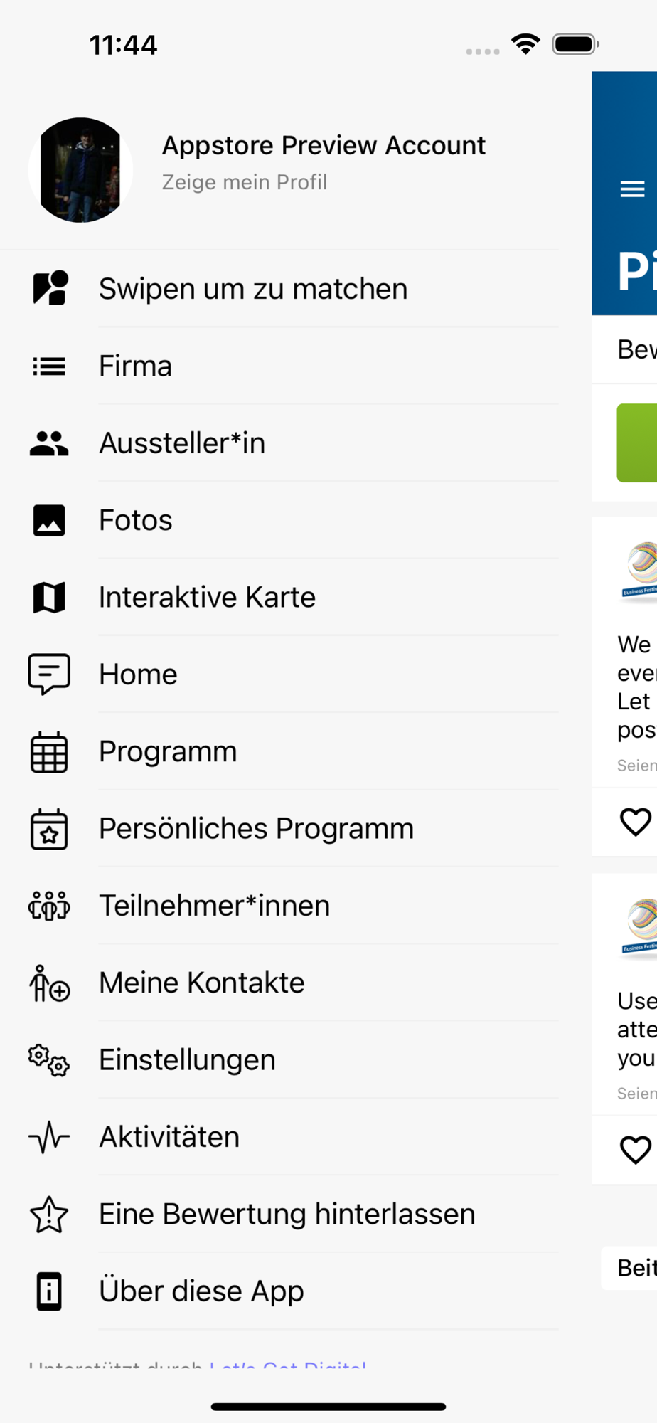 Die offizielle App für die Business Festival 2024 bietet Ihnen nahtlosen Zugang zu Social feed, Teilnehmer*innen, Chat, Connection Center, Swipen um zu matchen und Aussteller Funktionen, um Sie während der Veranstaltung verbunden und engagiert zu halten.