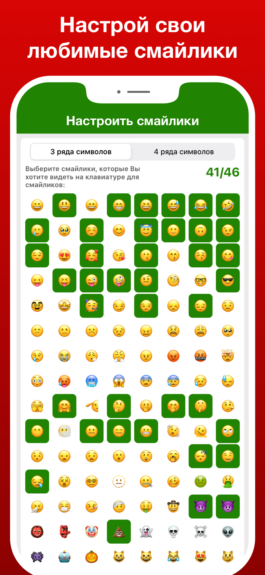 ► можно выбрать смайлики, которые будут показаны на клавиатуре