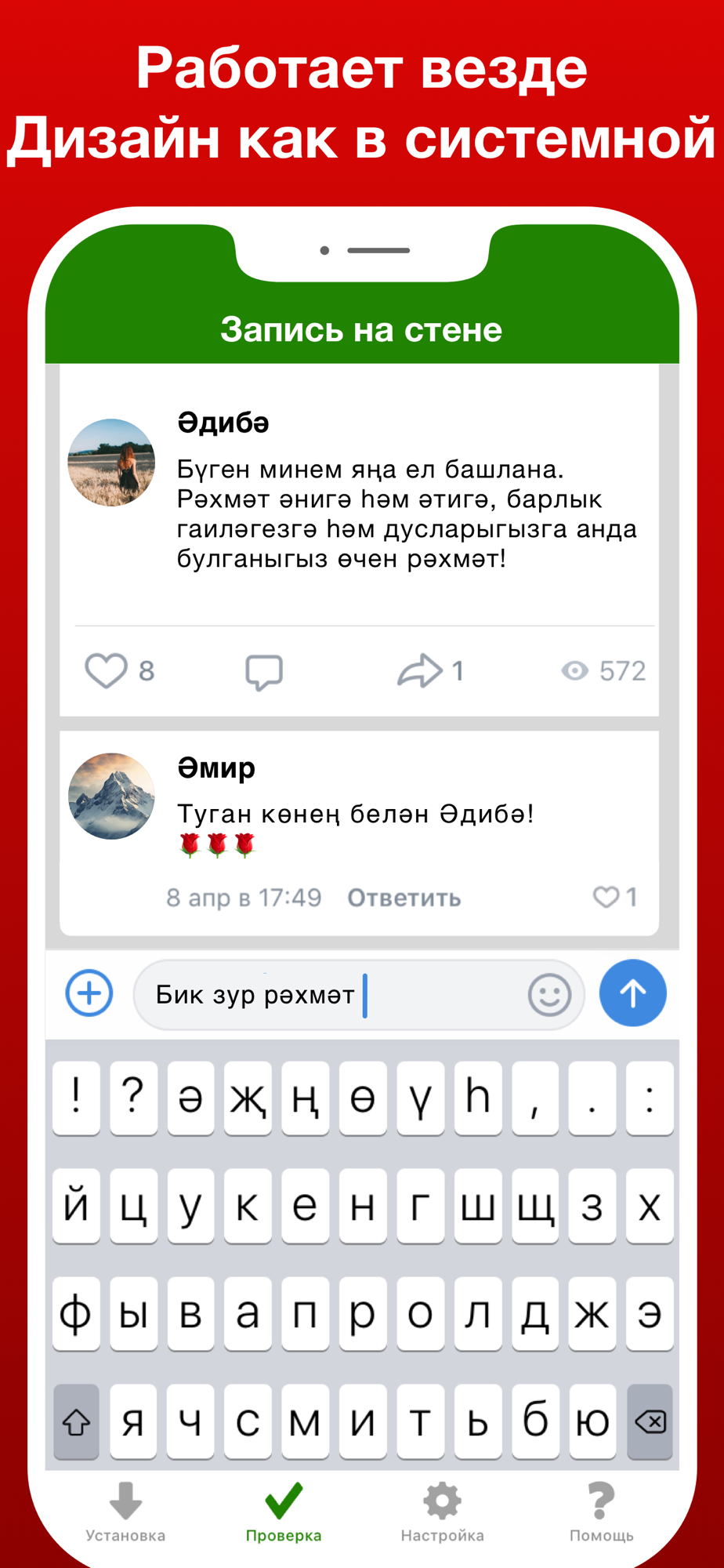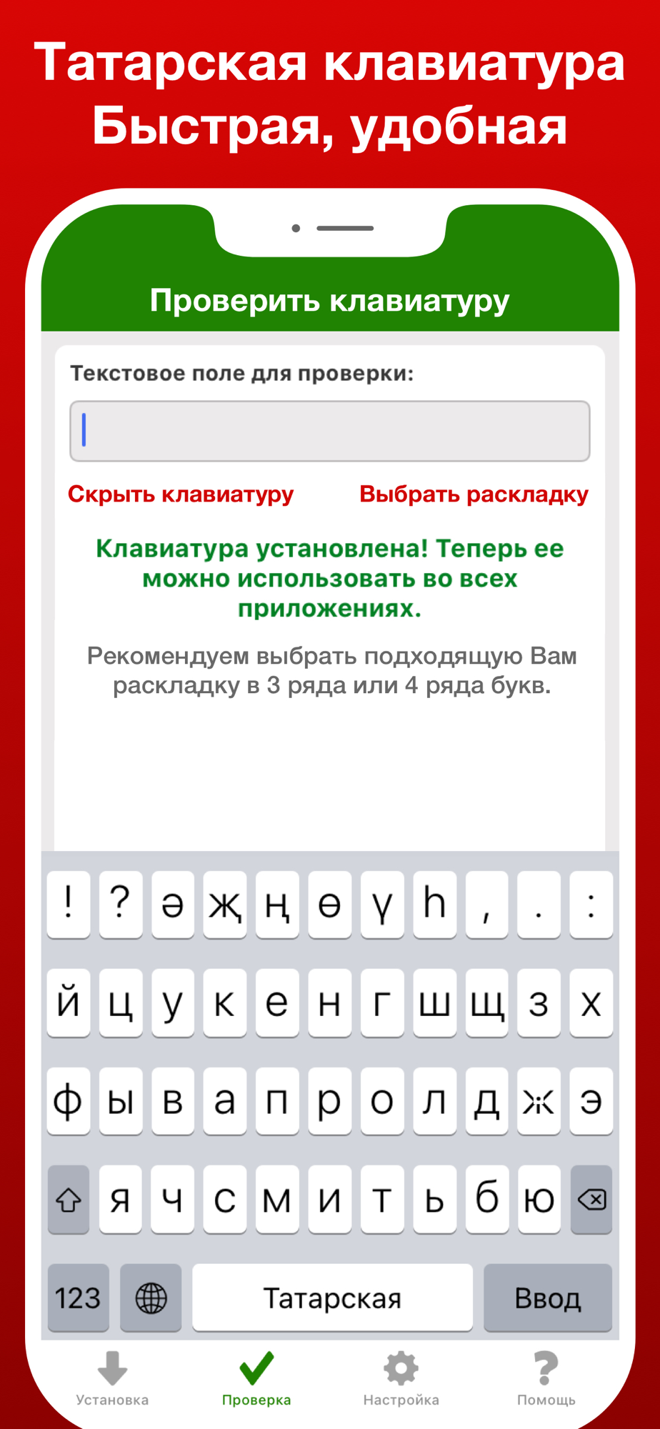 Быстрая и удобная Татарская клавиатура с разными вариантами раскладок. Работает во всех приложениях и выглядит как системная клавиатура iOS.