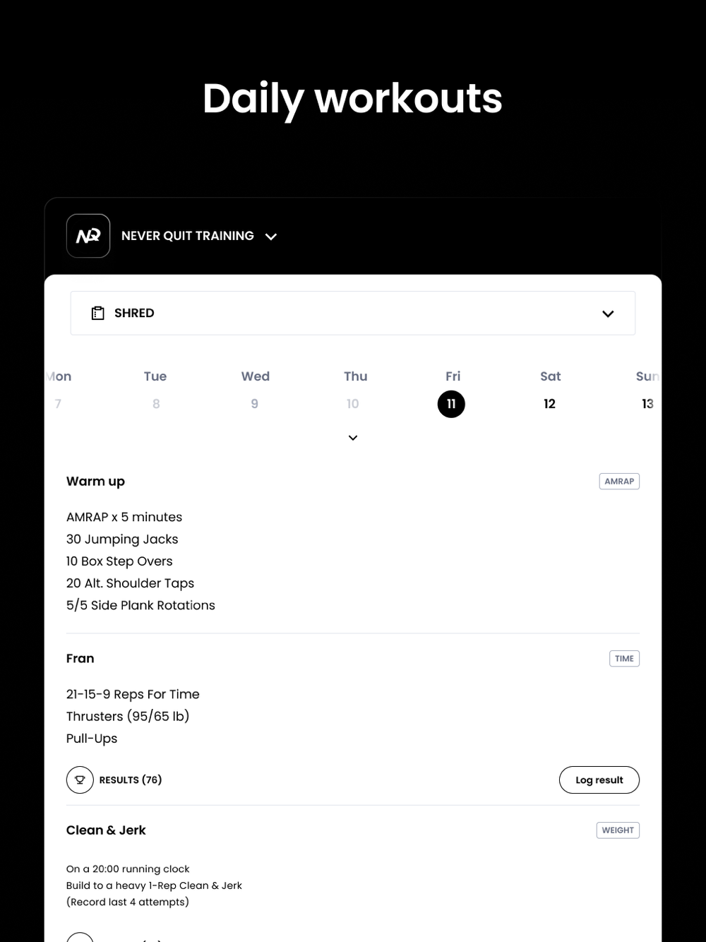 For members of NEVER QUIT TRAINING to reserve their place in a class, sign up for gym events, and general account management like updating headshots and credit card on file.