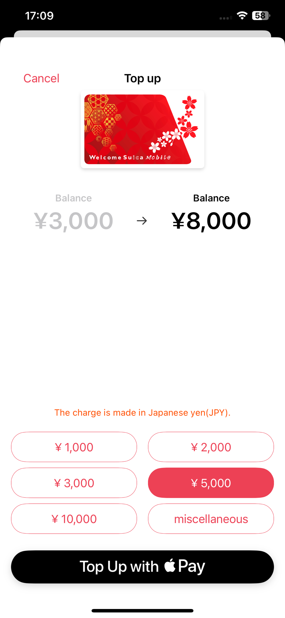 - Top-ups are done through the credit card registered to Apple Pay. You don’t need to register your credit card information within the app.